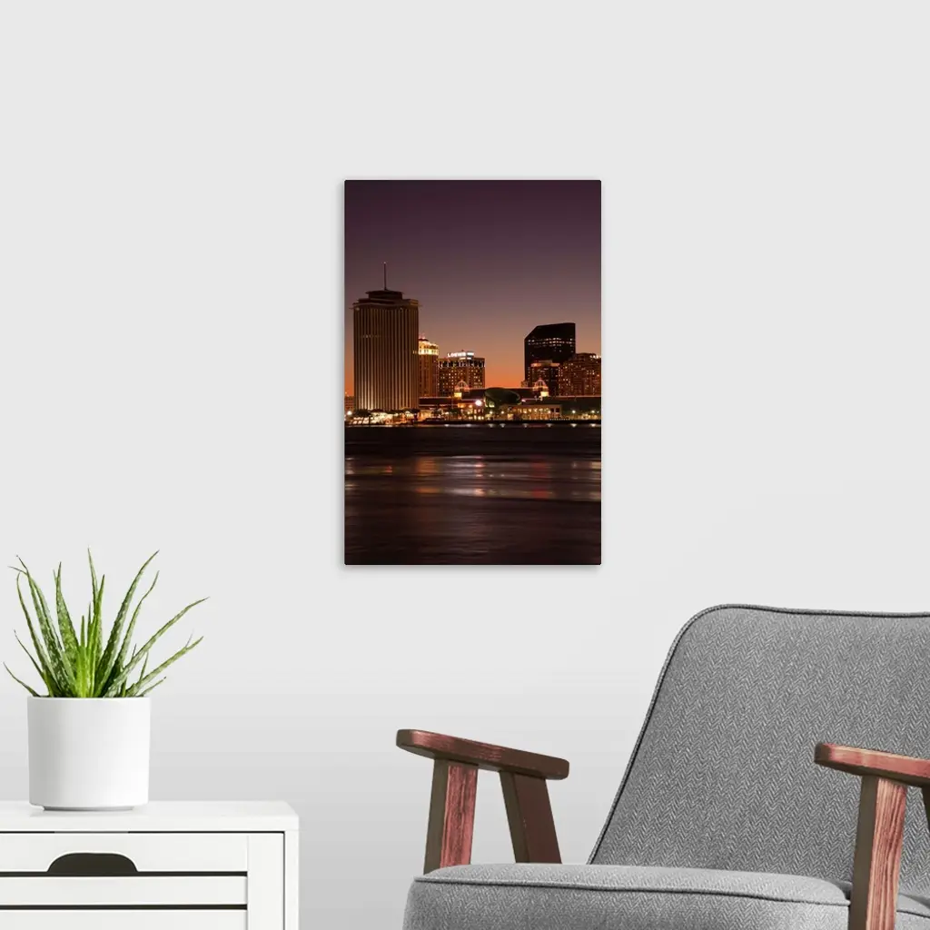 Buildings at the waterfront, Mississippi River, New Orleans, Louisiana wall art for home and office decor. Discover canvas art prints, photos, mural, big canvas art and framed wall art in GreatBigCanvas.com's varied collections.