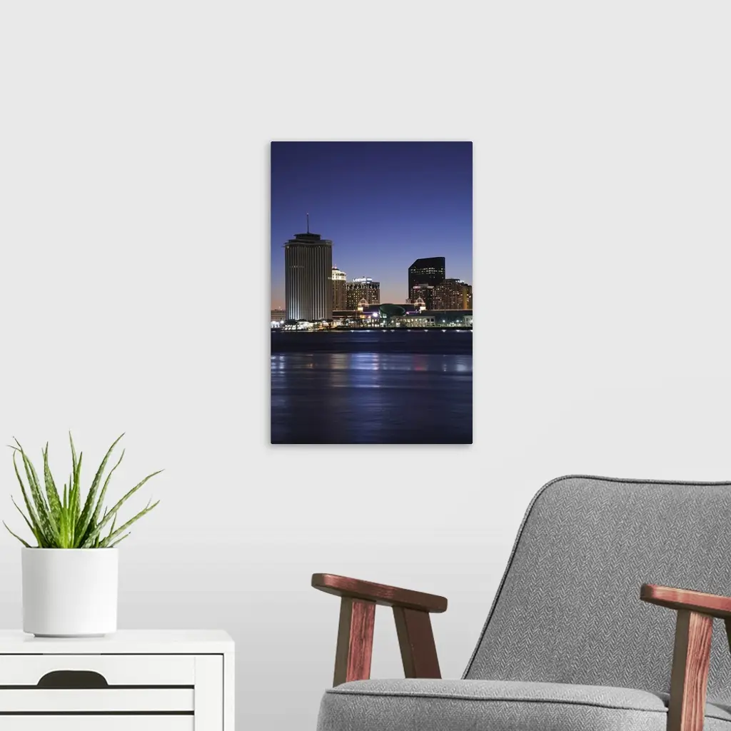 Buildings at the waterfront, Mississippi River, New Orleans, Louisiana wall art for home and office decor. Discover canvas art prints, photos, mural, big canvas art and framed wall art in GreatBigCanvas.com's varied collections.