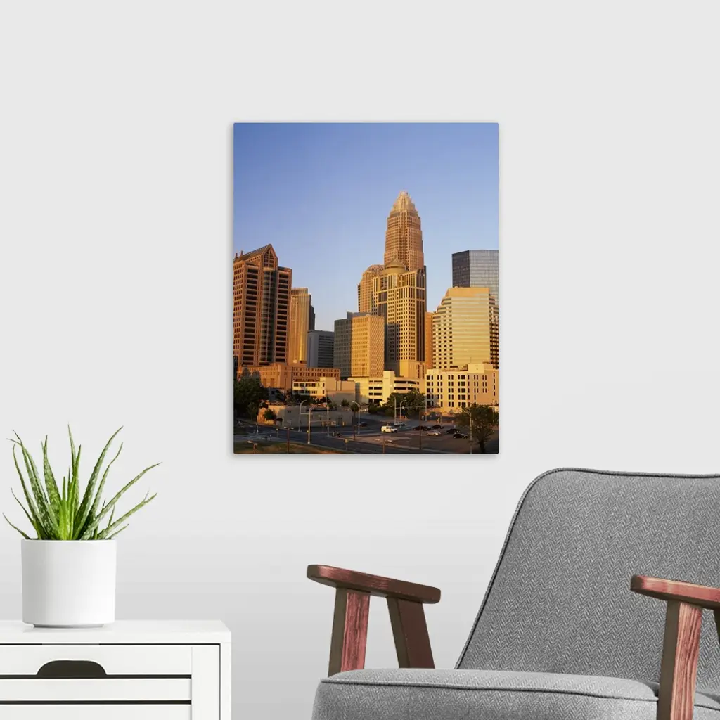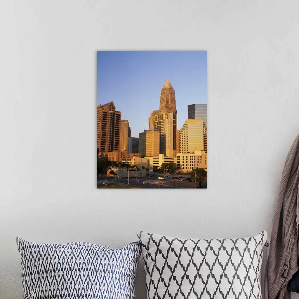 Buildings in a city, Charlotte, Mecklenburg County, North Carolina, wall art for home and office decor. Discover canvas art prints, photos, mural, big canvas art and framed wall art in GreatBigCanvas.com's varied collections.