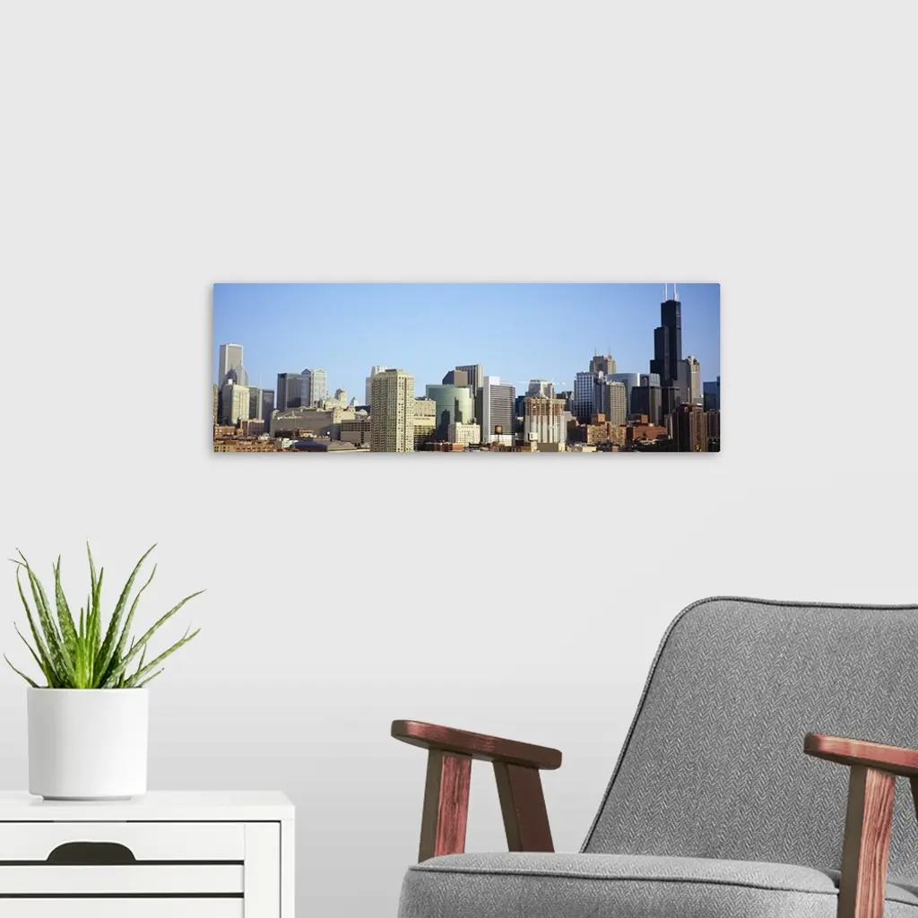 Buildings in a city, Chicago, Illinois wall art for home and office decor. Discover canvas art prints, photos, mural, big canvas art and framed wall art in GreatBigCanvas.com's varied collections.