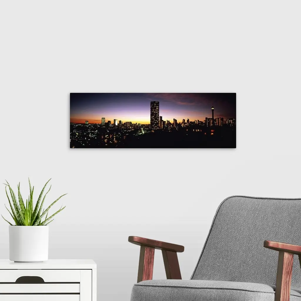 Buildings In A City Lit Up At Night, Johannesburg, South Africa