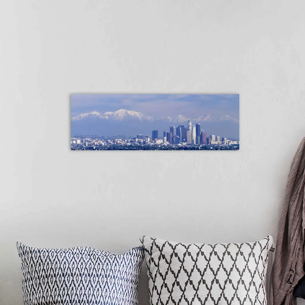 Buildings in a city with snowcapped mountains in the background, San Gabriel Mountains, City of Los Angeles, California wall art for home and office decor. Discover canvas art prints, photos, mural, big canvas art and framed wall art in GreatBigCanvas.com's varied collections.