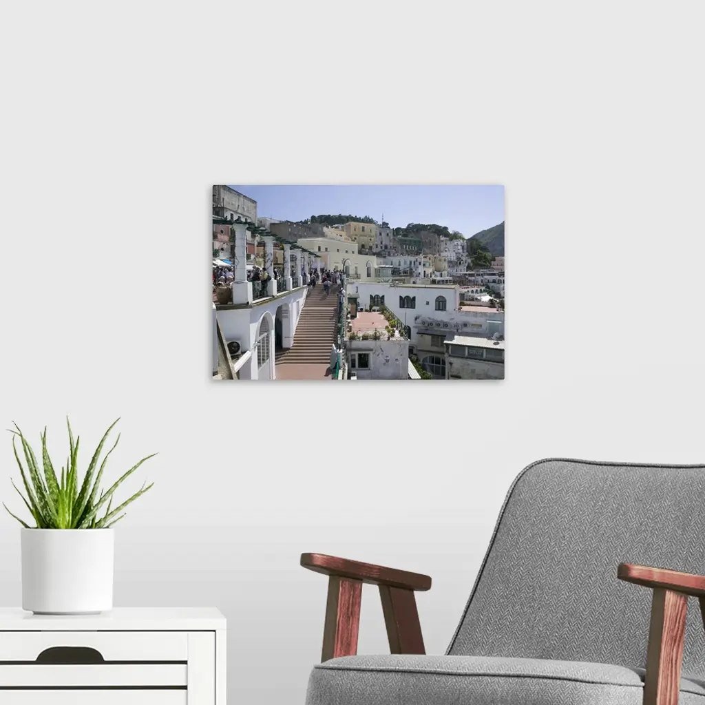 Buildings in a town, Capri, Bay of Naples, Campania, Italy wall art for home and office decor. Discover canvas art prints, photos, mural, big canvas art and framed wall art in GreatBigCanvas.com's varied collections.