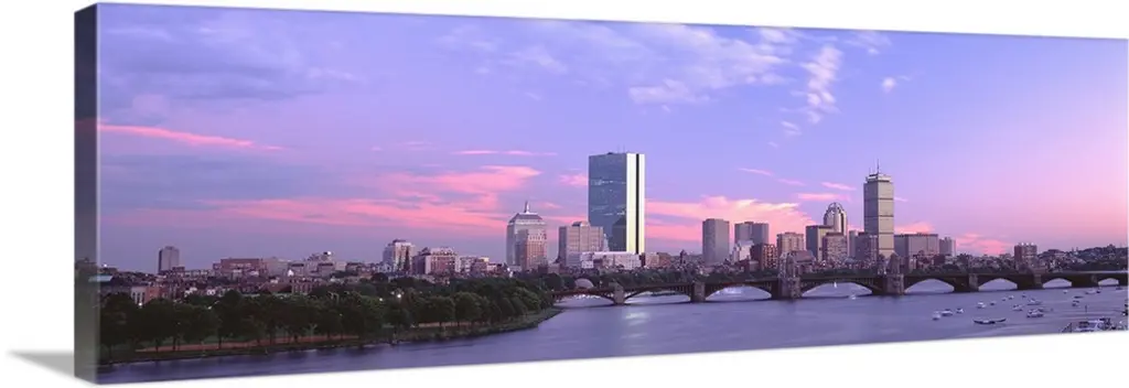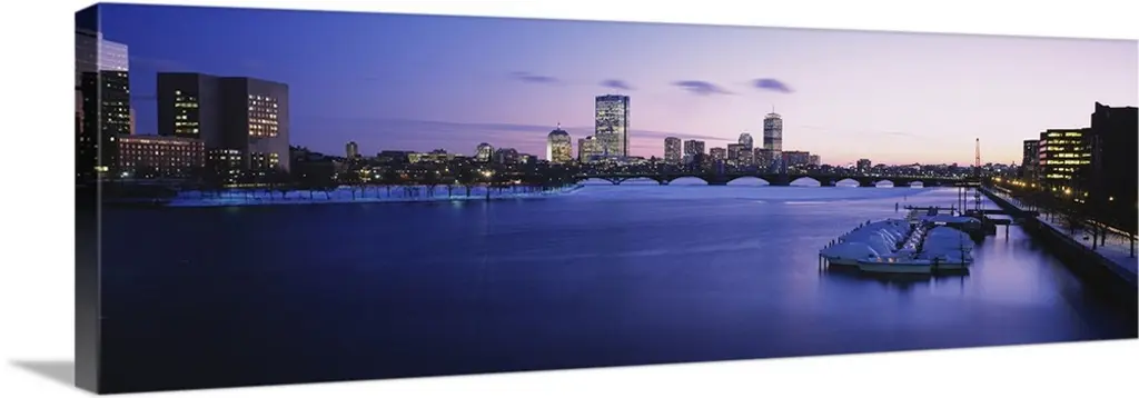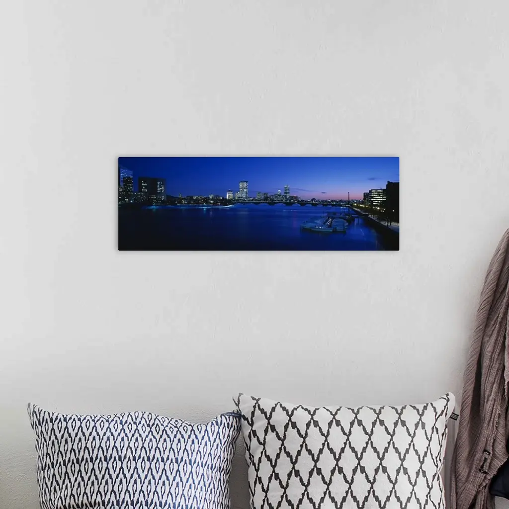 Buildings lit up at dusk, Charles River, Boston, Massachusetts wall art for home and office decor. Discover canvas art prints, photos, mural, big canvas art and framed wall art in GreatBigCanvas.com's varied collections.