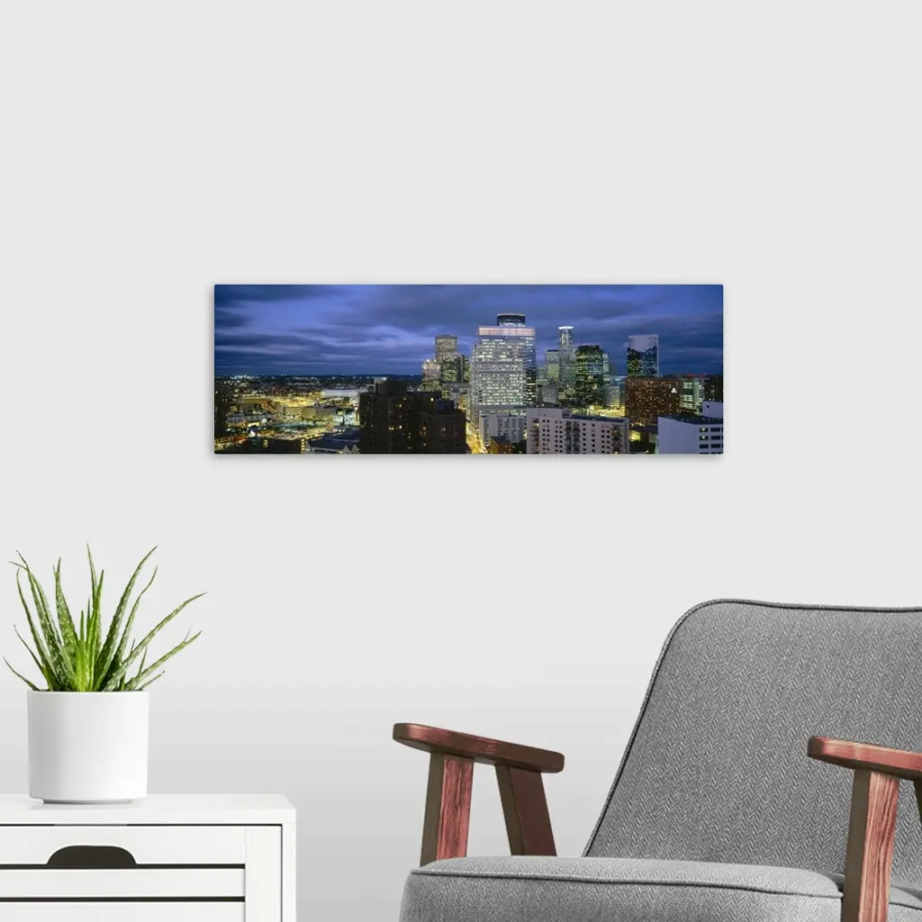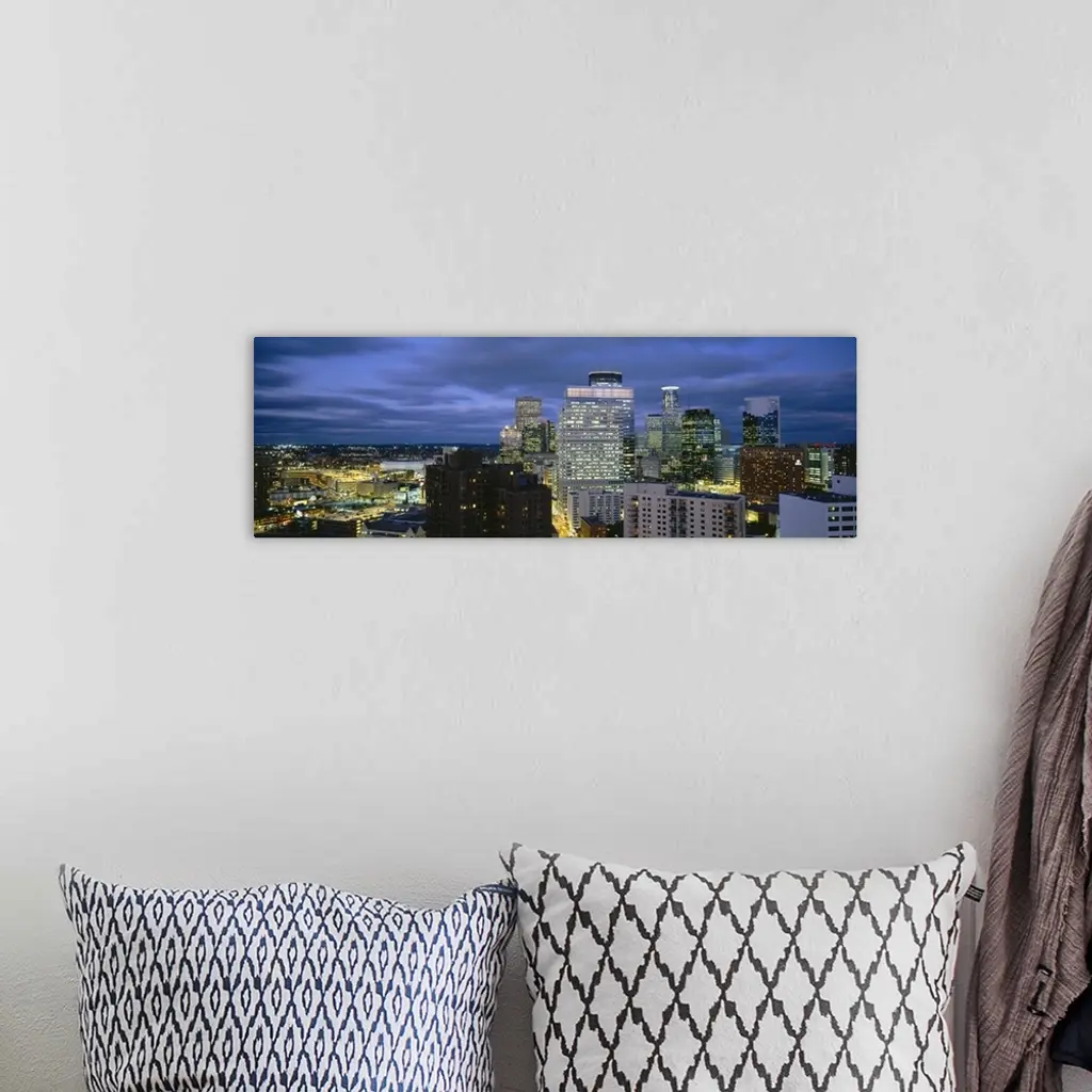 Buildings Lit Up At Dusk, Minneapolis, Minnesota wall art for home and office decor. Discover canvas art prints, photos, mural, big canvas art and framed wall art in GreatBigCanvas.com's varied collections.