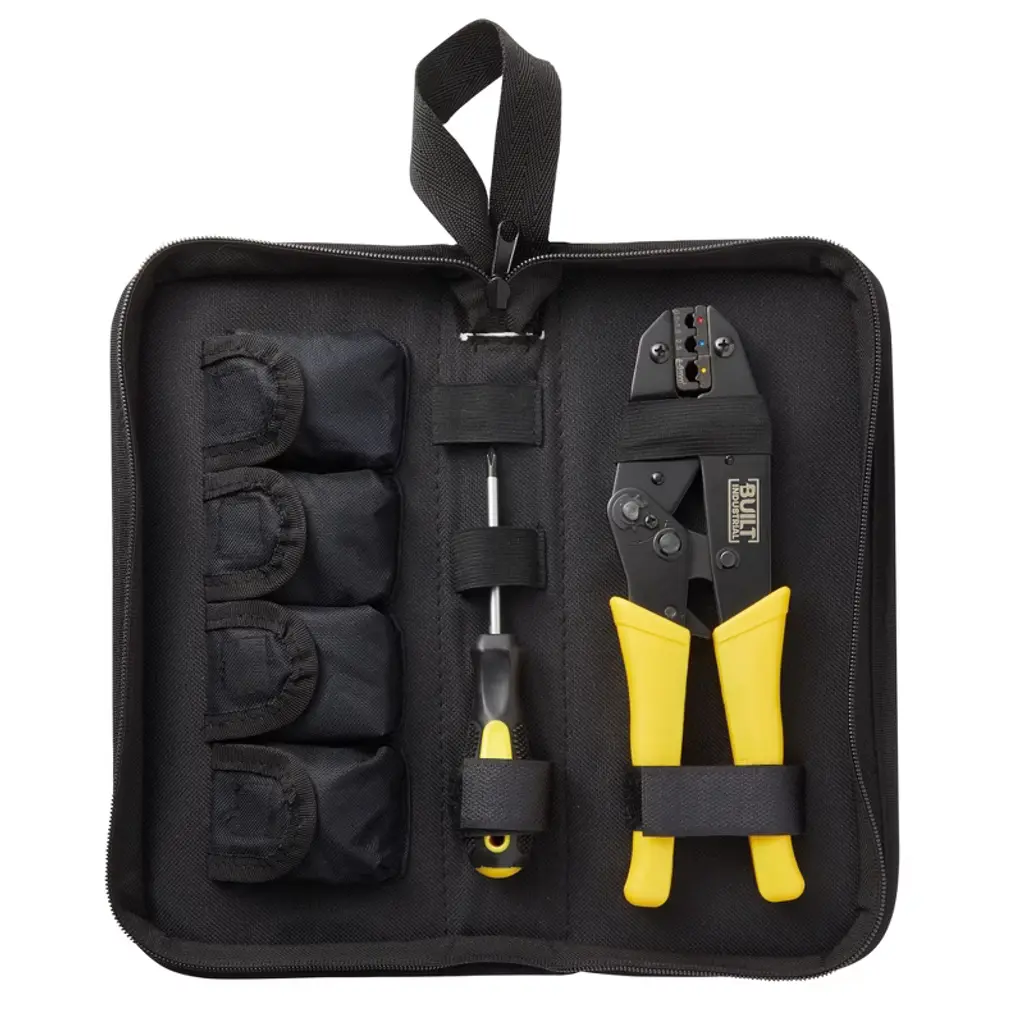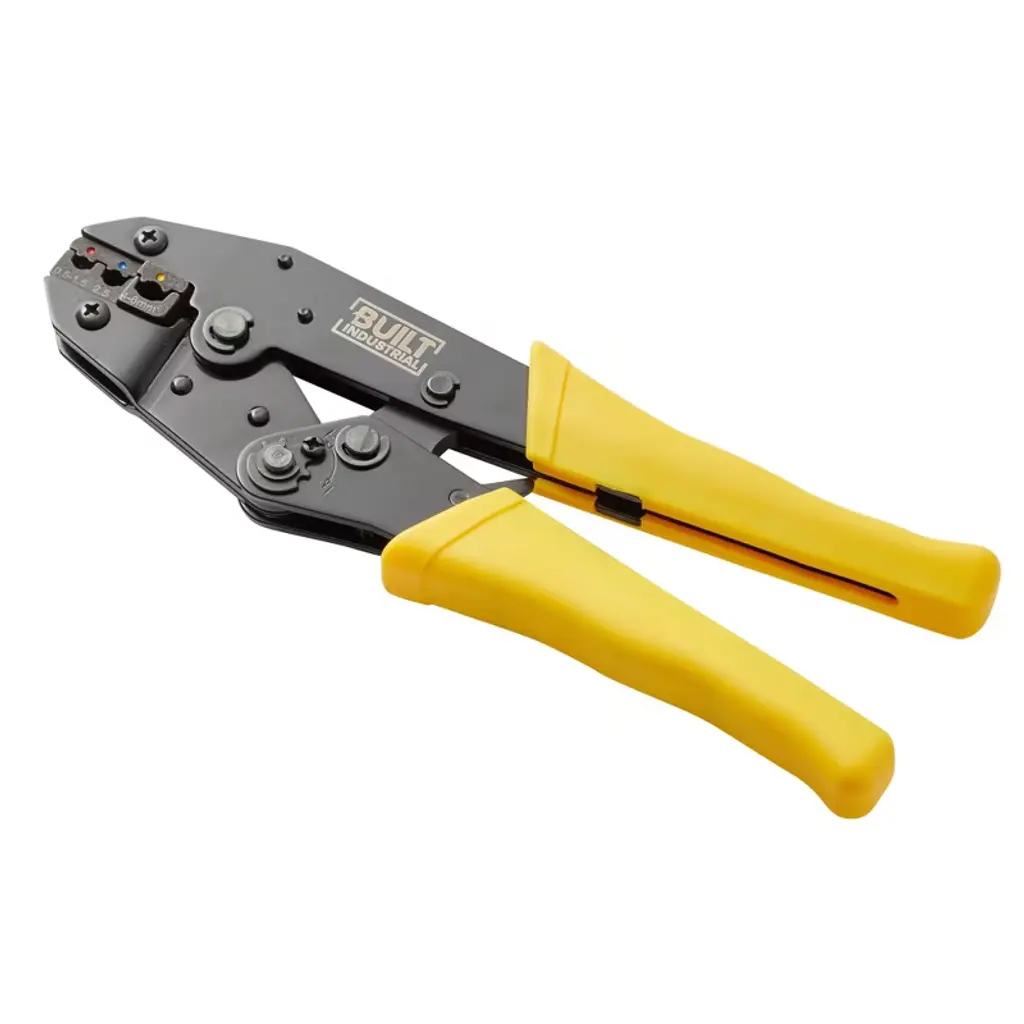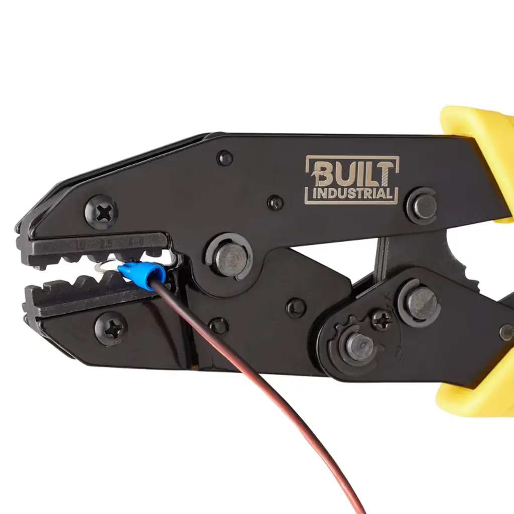 Built Industrial 5 Piece Ratcheting Wire Crimper Tool Kit For Construction, Home Improvement, Black And Yellow