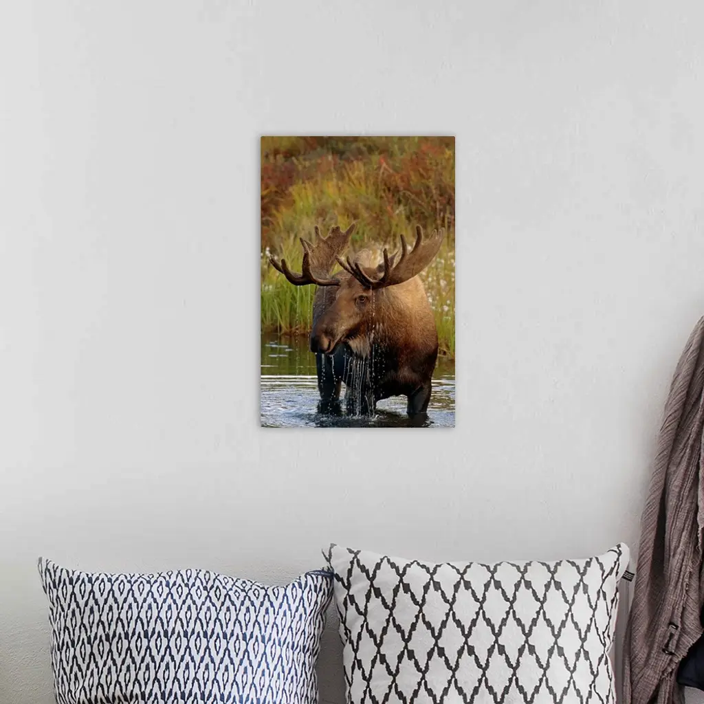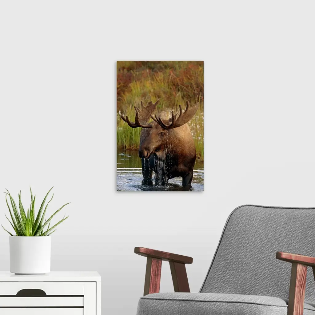 Bull Moose In Pond, Denali National Park, Alaska wall art for home and office decor. Discover canvas art prints, photos, mural, big canvas art and framed wall art in GreatBigCanvas.com's varied collections.