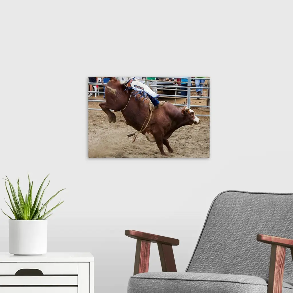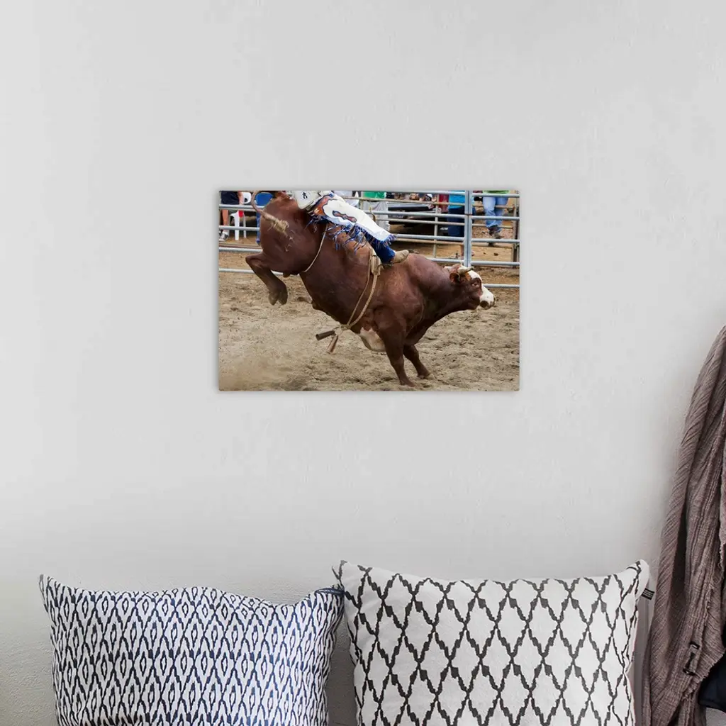 Bull Rider At Rodeo wall art for home and office decor. Discover canvas art prints, photos, mural, big canvas art and framed wall art in GreatBigCanvas.com's varied collections.