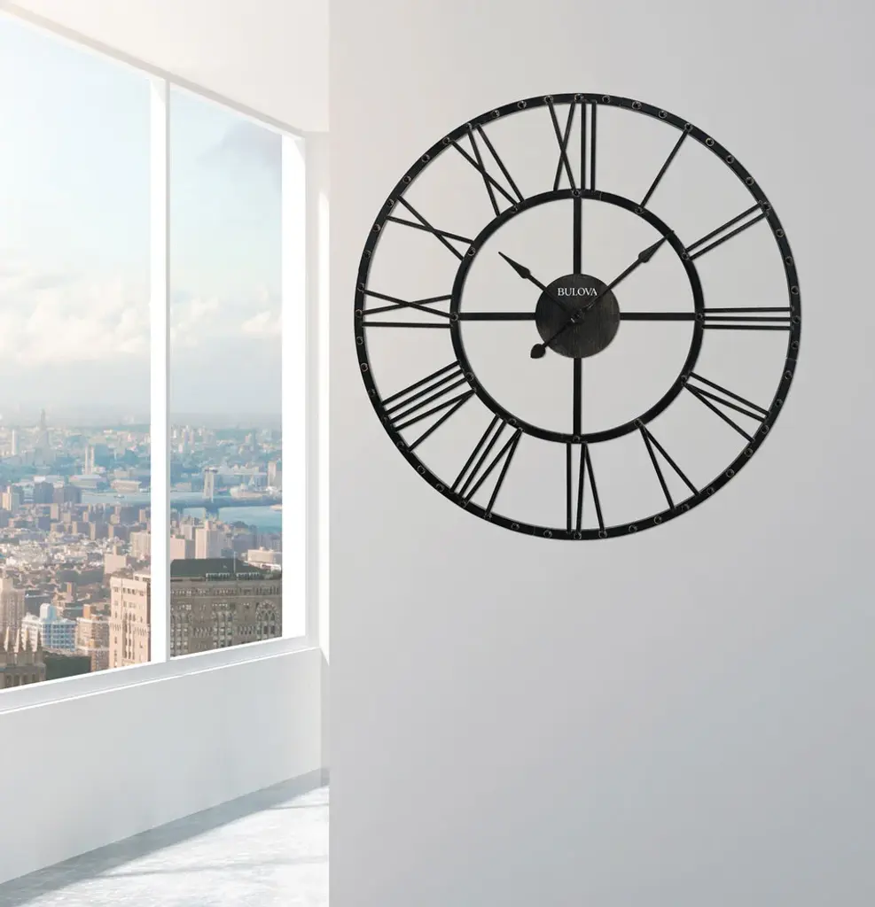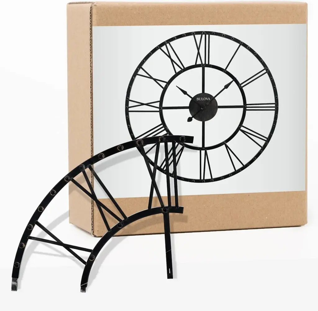Bulova C4820 CARMEN ClockC4820 CARMENOversize metal case, aged iron finish. Gallery-style clock with large classic Roman numerals. Clock ships disassembled in four pieces. Easy assembly requires 4 screws/4 cap nuts. Lightweight channel construction makes it easy to hang. Requires (1) AA battery, not included. Dia.: 45 D: 1, Dia.: 114cm D: 2.5cmBrand:-BulovaBulova C4820 CARMEN ClockProduct Dimension W:-45Product Dimension L:-1Product Dimension H:-45ItemNumber#C4820Product Dimensions (W x D x H): 45 x 1 x 45
