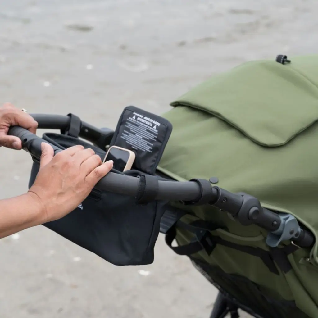 This simple parent console makes staying organized nearly effortless. Attach the pack with hook-and-loop straps, then stash a phone and keys in the secure magnetic pouch. Two adult-sized cup holders accommodate iced coffees during those early morning walks, and when it's time to store the stroller, no need to remove the organizerit folds along with it.Check out our Types of Strollers Guide to learn more.