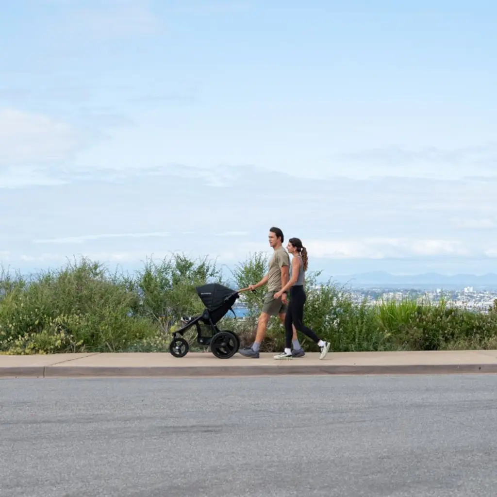 The bumbleride® Speed's air-filled tires and cushy seat ensure a smooth ride for your best jogging/napping buddy. The stroller features three steering modesrun, jog and walkplus smart design extras like a roomy cargo basket, a sun canopy extension and reflective elements for high visibility. At the end of the day, it folds closed in one swift step and stows away standing.