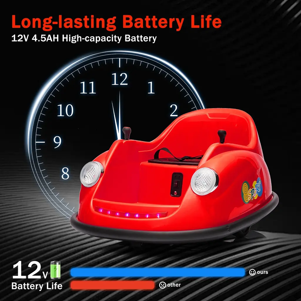Manual & Remote Control - Your little one can drive our ride on Bumper car independently. The remote has forward/reverse and turn controls, for ages 1.5-3 years, it’s recommended to use the remote control so parents can control the toy for greater safety.• 360 Degree Spin - Bumper car with a 360 degree spin for more smiles and greater riding fun. Ideal for toddlers and kids aged 1.5-6 years with a maximum weight capacity of 60 lbs.• Classic Safety Design - The smooth, curved profile combined with a thick rubber-like bumper and a fun set of vibrant stickers lets your child personalize their ride. Takywep electric car's sturdy plastic shell construction ensures long-lasting durability. This ASTM-certified ride on car is equipped with a safety belt and anti-flat tires for more protection.• Premium Performance - A set of functional lights conveniently located on a seat-mounted control panel adds an extra, realistic touch to playtime. Others, Include a rechargeable 12V battery that lets your kids enjoy 1-3 hours of riding fun. Battery charging time is about 5-6 hours.• A Gift for Kids: Takywep ride on toys are the perfect birthday, holiday, or Christmas gift. They will play endlessly and enjoy their time.