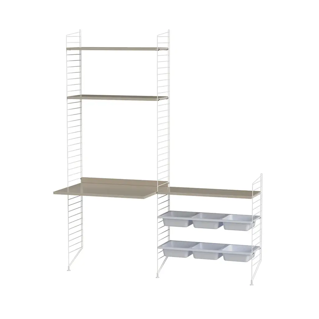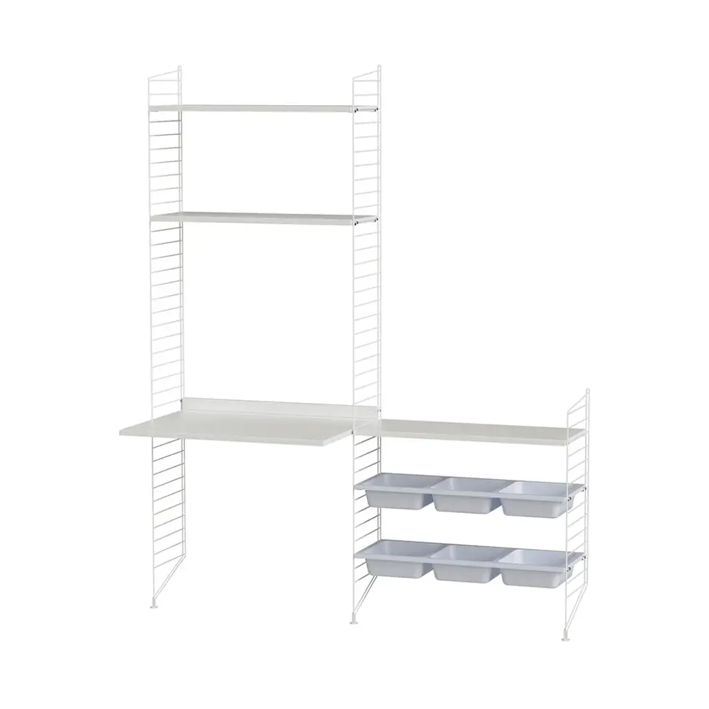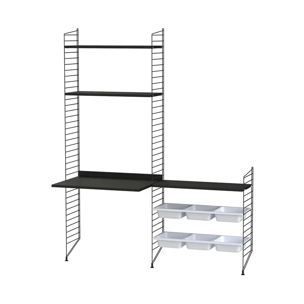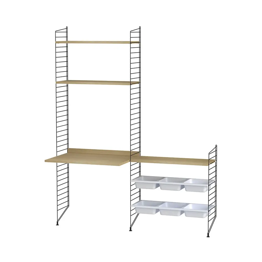 String’s preconfigured storage for kids offers a place for everything as well as a creative home base, with a desktop for activities, from coloring books for the youngsters to school homework for teens. Along with shelves in a full range of wood veneer and painted choices, the bowl compartments keep oddly shaped items like toys and games neatly stowed away. And this floor-mounted system will keep up with their needs as they grow, easily expandable with all String components, a key feature of Nils Strinning’s timeless 1949 design.