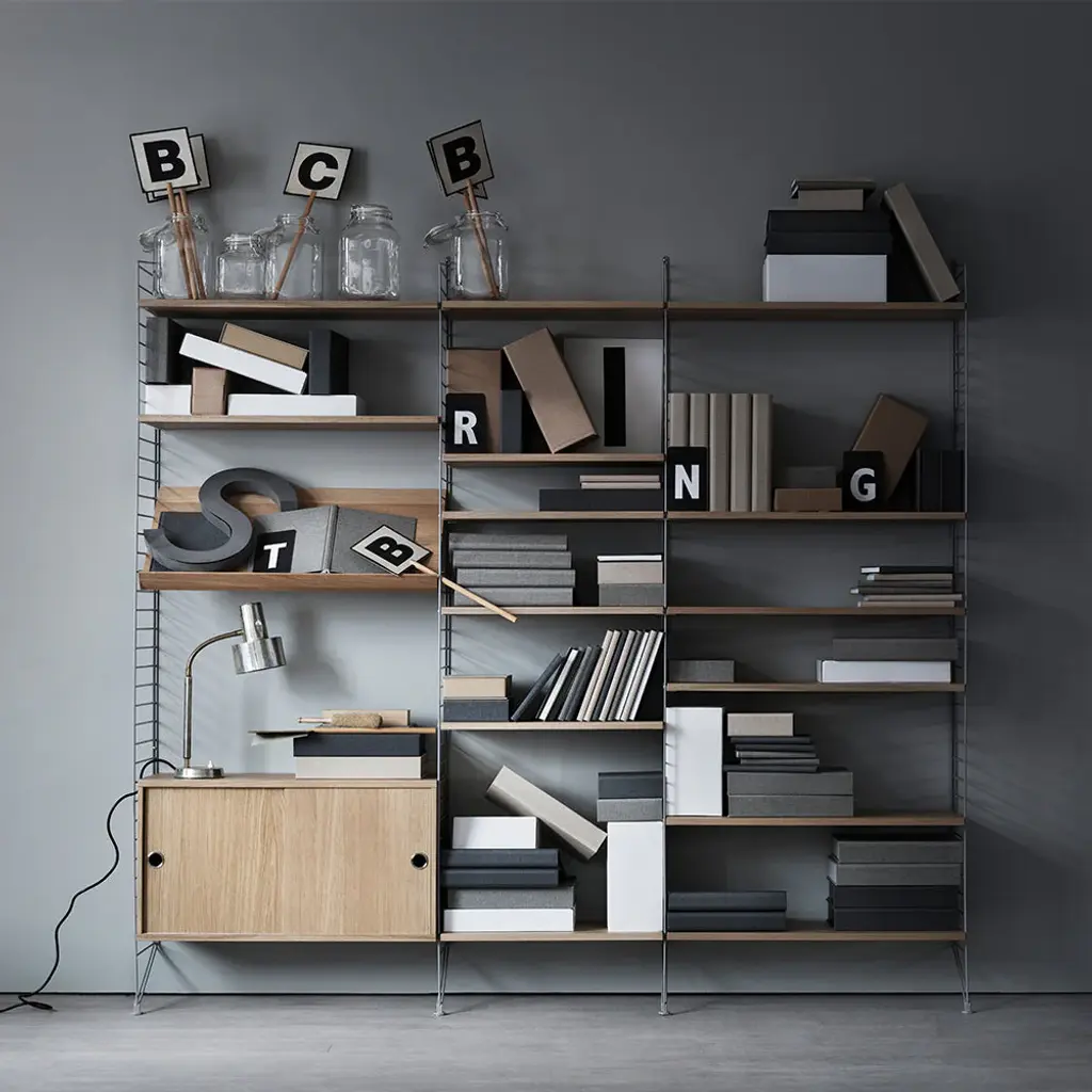 Perfect for any bibliophile, String offers a preconfigured double-section bookshelf with the timelessly modern look that designer Nils Strinning first introduced in 1949. With the classic coated-wire framework, its shelves come in the collection’s full range of woodgrain veneer and painted finishes—a versatility that allows it to meld with many styles of decor. For home or office, the floor-mounted unit maximizes storage in a medium-sized space while its understated style leaves the attention to the books and objects on display.
