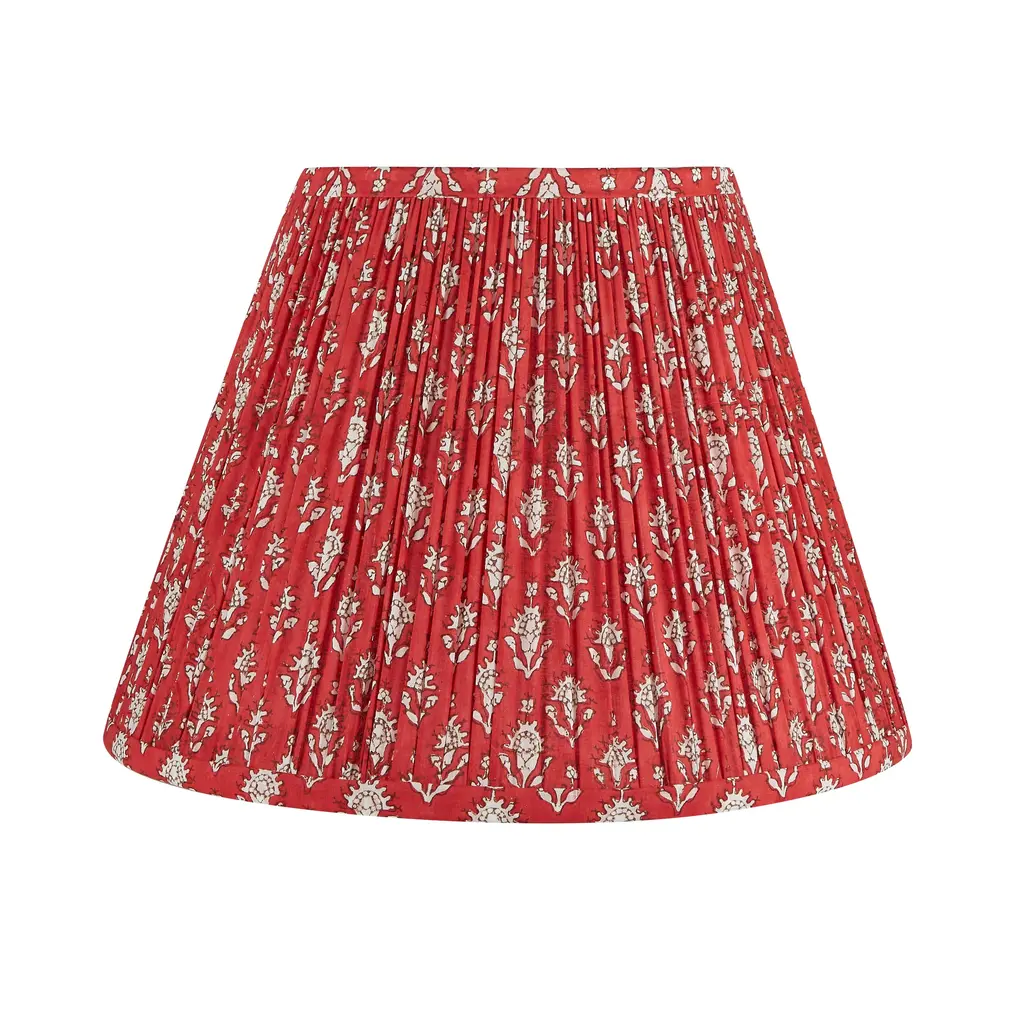 Patterned lampshades have long been a decorator’s secret to add color and texture to a space in a unique way. Our exclusive patterned shades are the perfect tool for this - made of cotton voile fabric. A vibrant floral pattern, the rich red looks especially beautiful atop blue lamps. This lamp shade features a spider fitting, which is the common standard and will fit most lamp bases. This shade also comes with a washer for a seamless fit with your lamp finial.