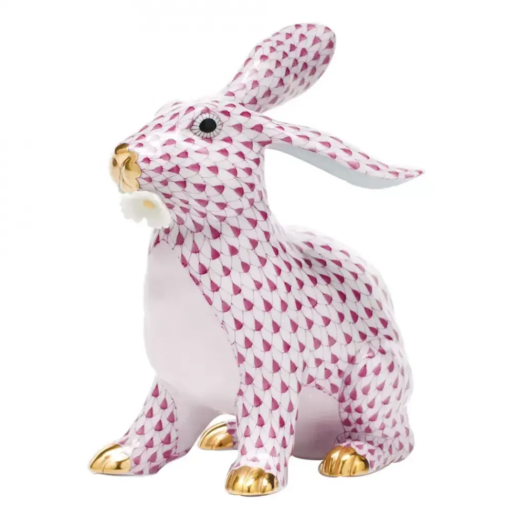 All the Creatures Great and Small, Herend has made them into adorable and artistic handpainted collectible figurines. The fishnet decorative pattern is a distinctive Herend trademark and identifies each piece as one of the world's most precious collectibles. They show off our favorite friends at their most charming and lovable and make wonderful presents and treasured keepsakes for years toc ome. Now the biggest porcelain manufactory in Europe, Herend was founded in 1826 to produce earthenware in the small Hungarian village for which it was named. At the time, Hungary was flooded with low-cost pottery, but in 1839, Mor Fischer became the Manufactory’s new owner and he decided to focus on producing dinnerware replacement pieces for Europe’s royal families to complement their valuable porcelain patterns from Germany and the Far East. As his client base grew, Fischer commissioned his artists to begin designing dinnerware patterns of their own. Queen Victoria’s 1851 purchase of a large set for Windsor Castle was a milestone, setting the stage for aristocrats throughout Europe to clamor for Herend in their estates. In the 1850s, Herend added meticulously-crafted figurines to its creations. Herend’s trademark fishnet pattern, which is widely recognized and prized as Herend’s signature design, started in 1858 when an artist who was intrigued with a Chinese plate’s fish scale design painted it onto a rooster figurine to imitate feathers.