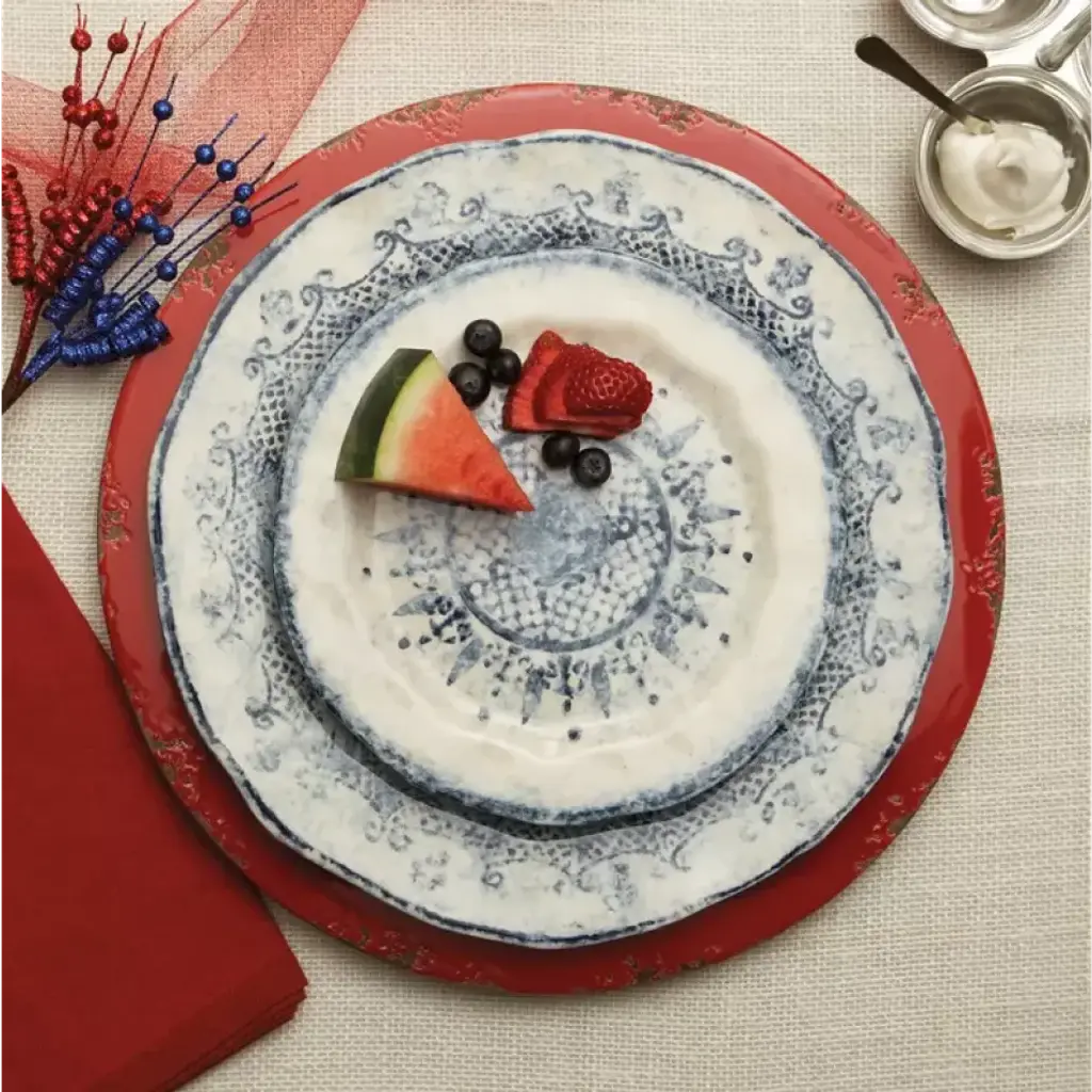 The Burano dinnerware collection is named for an island off the coast of Venice that prides itself as the center of embroidered lace. In hues of navy blue and warm white, the design is reminiscent of beautiful, hand-stitched lace. Hand painted on shapes with uneven edges, vintage and fresh combine in this charming collection. Burano blends beautifully with our Scavo collection in blue. Hand made in Italy. Four-piece setting includes dinner plate, salad/dessert plate, pasta/cereal bowl, and mug. Founded in 1997 by Ann Skidmore, Arte Italica is a story of one woman's passion for Italian history, culture, art, and vintage pewter. Today, Arte Italica is one of the leading importers of European tabletop and home accessories products in the United States. Every piece is handmade and designed so that they can easily be mixed and matched to create a timeless, classic, and effortless look.