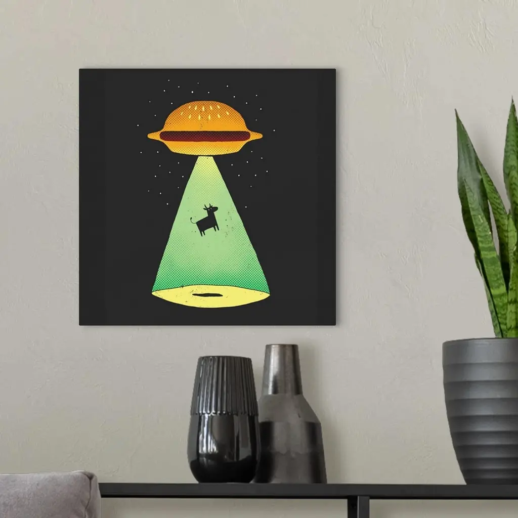 Burger Abduction wall art for home and office decor. Discover canvas art prints, photos, mural, big canvas art and framed wall art in GreatBigCanvas.com's varied collections.