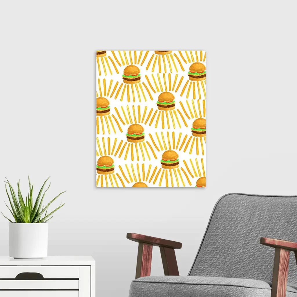 Burger And Fries wall art for home and office decor. Discover canvas art prints, photos, mural, big canvas art and framed wall art in GreatBigCanvas.com's varied collections.