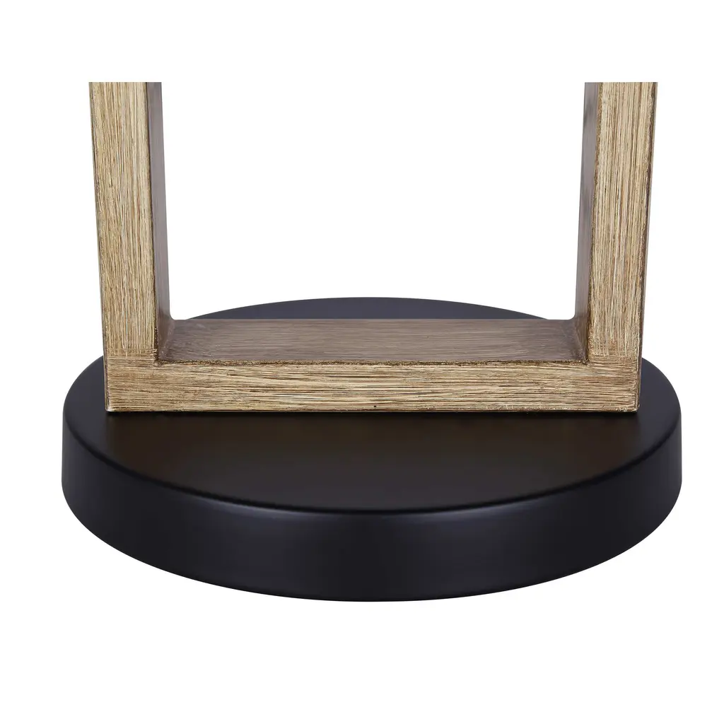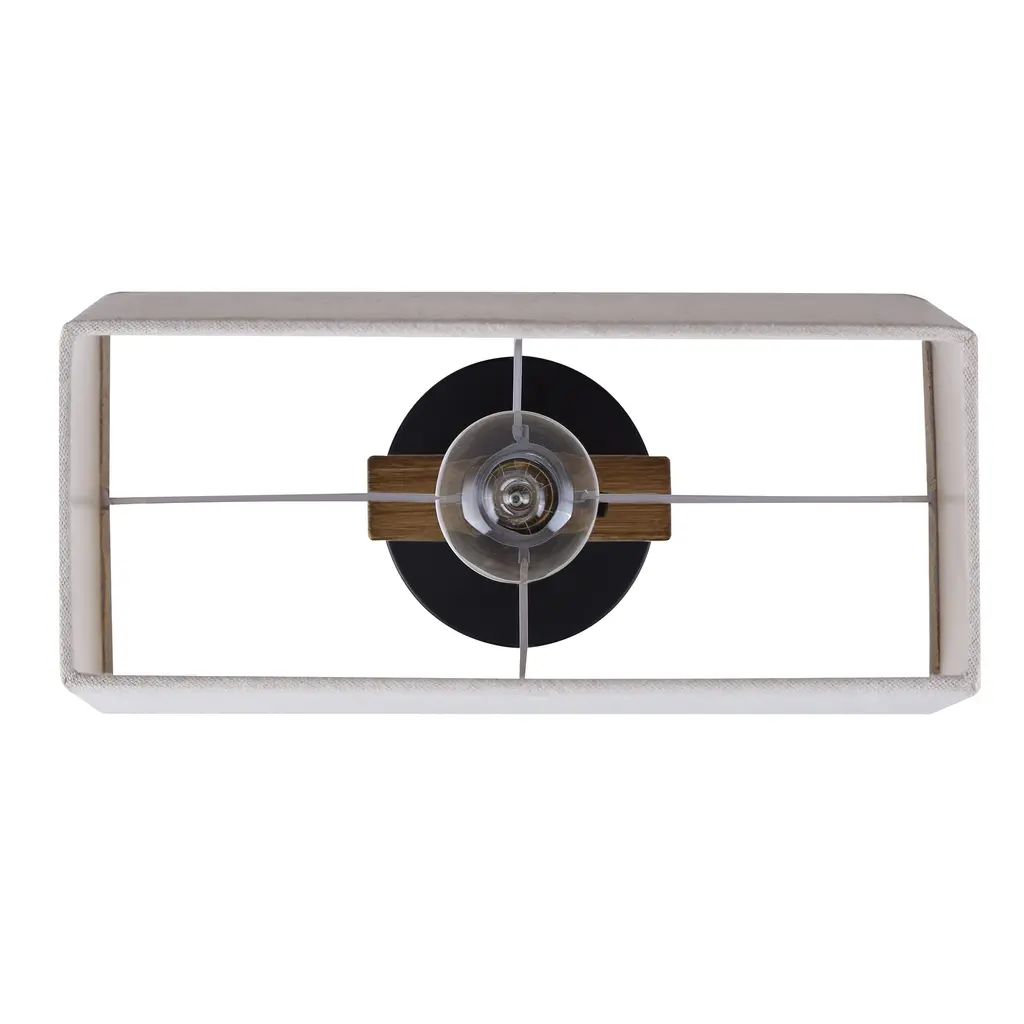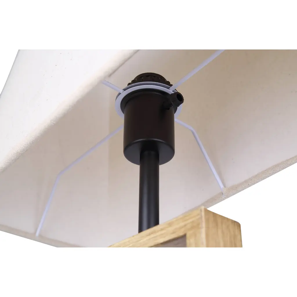 Introduce a touch of modern elegance into your space with our table lamp featuring a striking matte black and brushed brown geometric base. Paired with a natural cotton-like fabric shade, this lamp exudes a sleek and minimalist aesthetic. Standing at 26 inches tall and 15 inches wide, with a compact depth of 7 inches, it fits effortlessly into various settings. The shade, sized at 15" x 9 3/4", complements the geometric base beautifully. Conveniently equipped with a switch on the base and a clear cord, this lamp is designed for dry locations, making it perfect for accent lighting or reading nooks.Modern Geometric Design: Featuring a matte black and brushed brown geometric base, this table lamp adds a contemporary flair to any room. The natural cotton-like fabric shade complements the sleek, minimalist aesthetic.Compact and Versatile: With dimensions of 15" wide, 26" tall, and 7" deep, this lamp is ideal for accentuating smaller spaces or serving as a stylish addition to larger areas. It's perfect for enhancing decor or creating cozy reading nooks.Convenient Switch and Clear Cord: Equipped with a switch on the base and a clear cord, this lamp offers easy operation and a clean, unobtrusive look. It's designed for dry locations, ensuring safety and reliability in indoor settings.Ambient Lighting: The natural cotton-like fabric shade diffuses light gently, creating a warm ambiance that enhances any room's atmosphere. Whether used in living rooms, bedrooms, or offices, it provides functional and aesthetic lighting.Sleek Minimalist Appeal: This lamp blends natural materials with a modern design, making it a versatile choice for contemporary interiors. Its understated elegance makes it an eye-catching accent piece while offering practical lighting solutions.