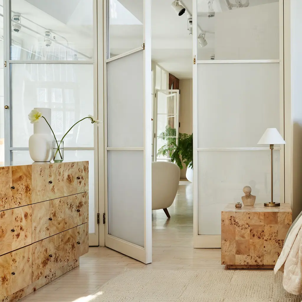 Beautiful, rare burl wood steals the spotlight. Warm-toned finish for a natural, organic look. Made from kiln-dried wood that's extra durable. Contract Grade, so you know it's built to last.