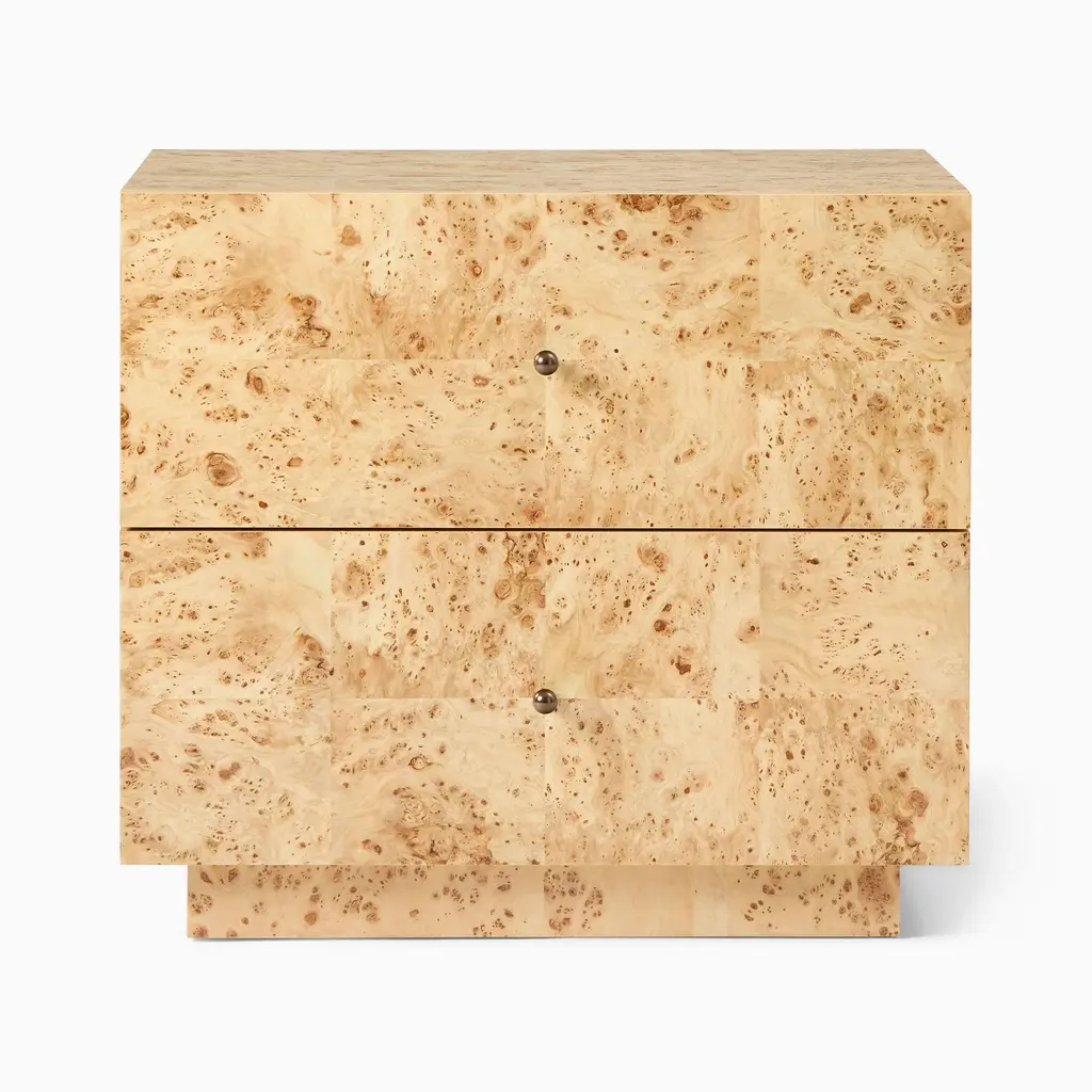 Beautiful, rare burl wood steals the spotlight. Warm-toned finish for a natural, organic look. Made from kiln-dried wood that's extra durable. Contract Grade, so you know it's built to last.