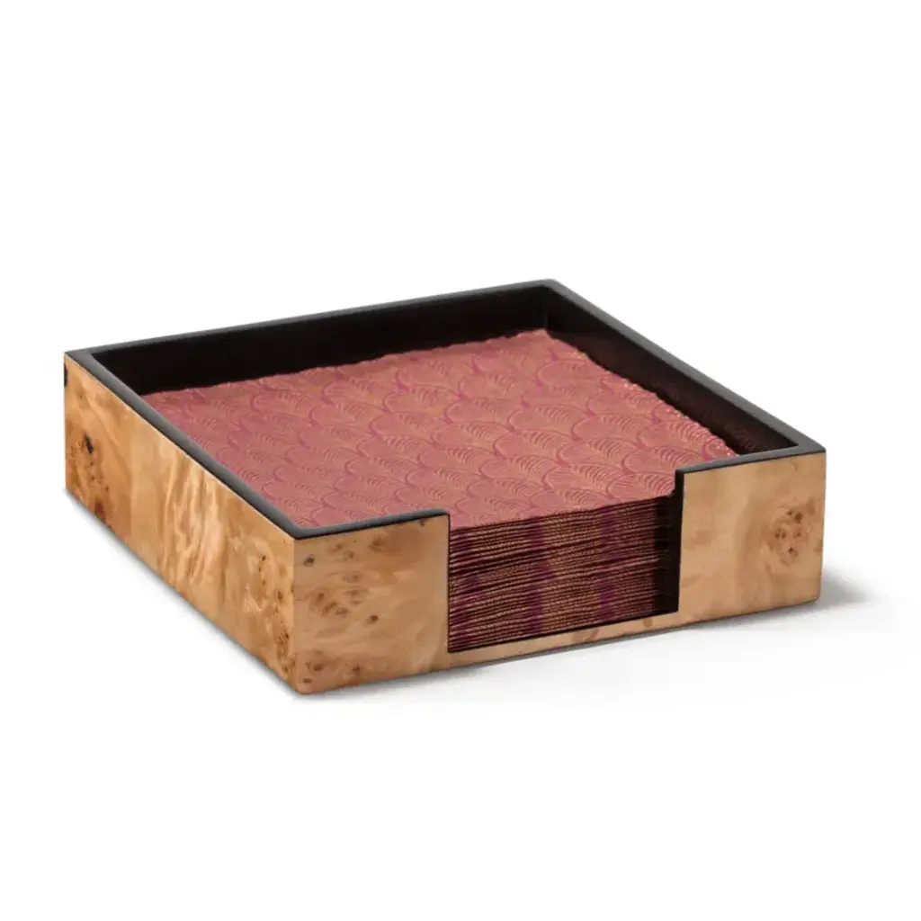 Functional and sophisticated, our Burl Veneer Dinner Napkin Holder cradles paper napkins while gracefully complementing your decor.