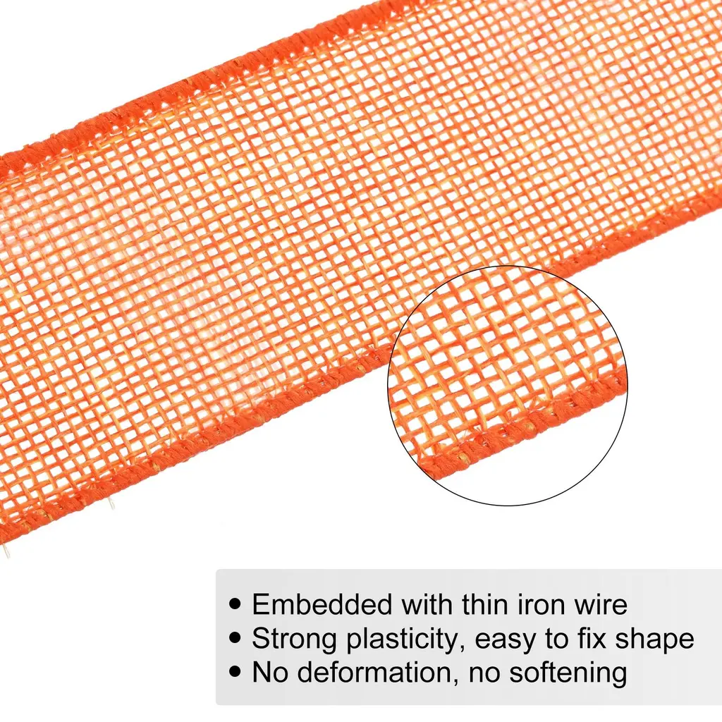 What is this?The burlap ribbon is made of faux jute material, iron wire is embedded on both sides, which is harder than cloth, easy to shape at will, no odor, washable, no shrinkage, no fading. Wired ribbon is very suitable for making large bows, wreaths, flower bouquet, tree decorations, Christmas decorations, Thanksgiving gift packaging, Halloween activities, party decorations, DIY crafts, Mother's Day, Father's Day, holiday gift wrapping, weddings, etc.What will I get?Dark Orange ribbon details:Size: 1-1/2 Inch x 10 Yard/3.8cm x 9.1m(W*L)Package contains: 1pcs x Burlap RibbonAre there any advantages of the product?The edge of the ribbon is thickened and wire is added, making it highly plastic and easy to fix in shape without deformation or softening.The mesh ribbon can be cut at will without burrs or looseness.How to use it?Cut the ribbon into any shape according to your needs, and then you can start DIY. Burlap fabric ribbon can also be used as decorations for balconies, windows, vases, porches, napkin rings, etc.What should I notice?There may be seams inside a roll of webbing (some may have), which is difficult to avoid due to workmanship. We use masking paper to stick them together, which will not affect the appearance and your use.