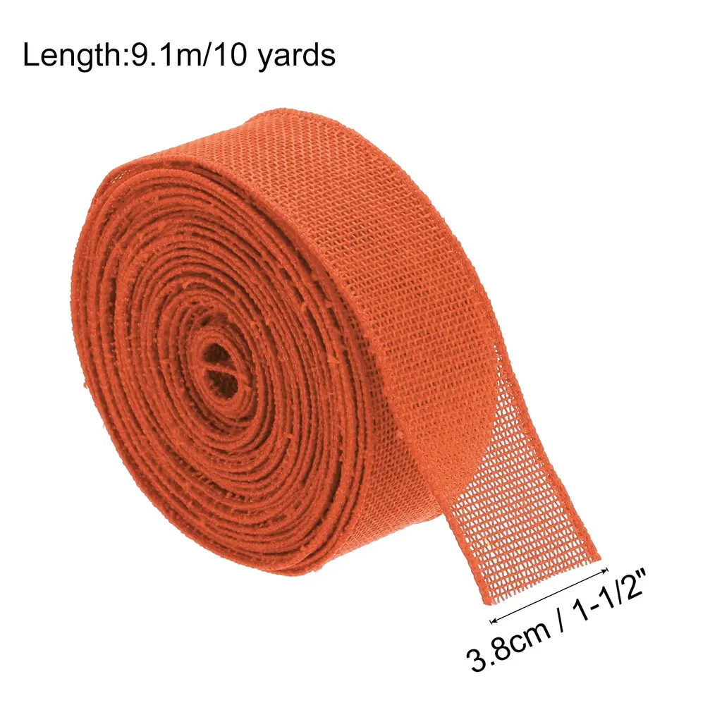 What is this?The burlap ribbon is made of faux jute material, iron wire is embedded on both sides, which is harder than cloth, easy to shape at will, no odor, washable, no shrinkage, no fading. Wired ribbon is very suitable for making large bows, wreaths, flower bouquet, tree decorations, Christmas decorations, Thanksgiving gift packaging, Halloween activities, party decorations, DIY crafts, Mother's Day, Father's Day, holiday gift wrapping, weddings, etc.What will I get?Dark Orange ribbon details:Size: 1-1/2 Inch x 10 Yard/3.8cm x 9.1m(W*L)Package contains: 1pcs x Burlap RibbonAre there any advantages of the product?The edge of the ribbon is thickened and wire is added, making it highly plastic and easy to fix in shape without deformation or softening.The mesh ribbon can be cut at will without burrs or looseness.How to use it?Cut the ribbon into any shape according to your needs, and then you can start DIY. Burlap fabric ribbon can also be used as decorations for balconies, windows, vases, porches, napkin rings, etc.What should I notice?There may be seams inside a roll of webbing (some may have), which is difficult to avoid due to workmanship. We use masking paper to stick them together, which will not affect the appearance and your use.