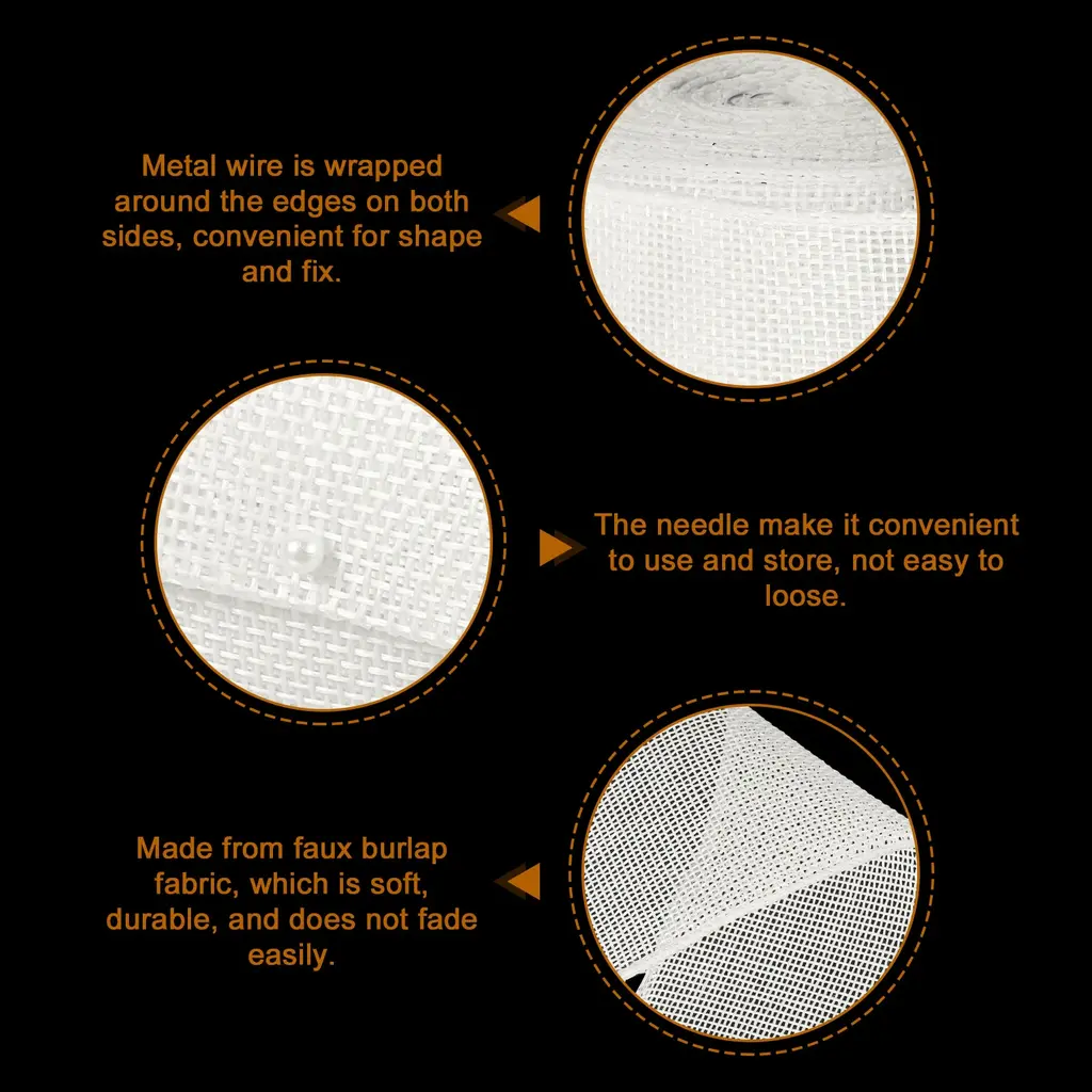 Product Specification:Material: faux burlap.Total width: 2-1/2 inch/63mm.Total length: 10 yards/9.1m length.Note: Due to different monitor models, the product you receive will be slightly different from the photo.Advantages of faux burlap wired ribbon:1. The wired ribbon is made from faux burlap fabric, which is soft, durable, and does not fade easily. Designed with high weave density, there won't be any loose edges. Metal wire is wrapped around the edges on both sides, which is convenient for you to shape and fix.2. Design by the simple solid colour, brings a sense of simplicity. The faux burlap wired ribbon roll makes it a great choice for creating country-inspired designs. Use it to accentuate handmade crafts, add a rustic touch to wedding decorations, or enhance the cozy feel of your home decor.3. This fabric ribbon roll is great for DIY crafts, such as bows, wedding invitations, and wreaths. It can be easily fixed and shaped to decorate for any occasion. You can cut, sew, or paste ribbons for various home decor or clothing designs.4. With its versatile design, this fabric-wired ribbon is perfect for all kinds of occasions, such as Christmas, weddings, Thanksgiving, Mother's Day, party decorations, etc. It can be used for gifts, Christmas trees, wedding bouquets, etc.