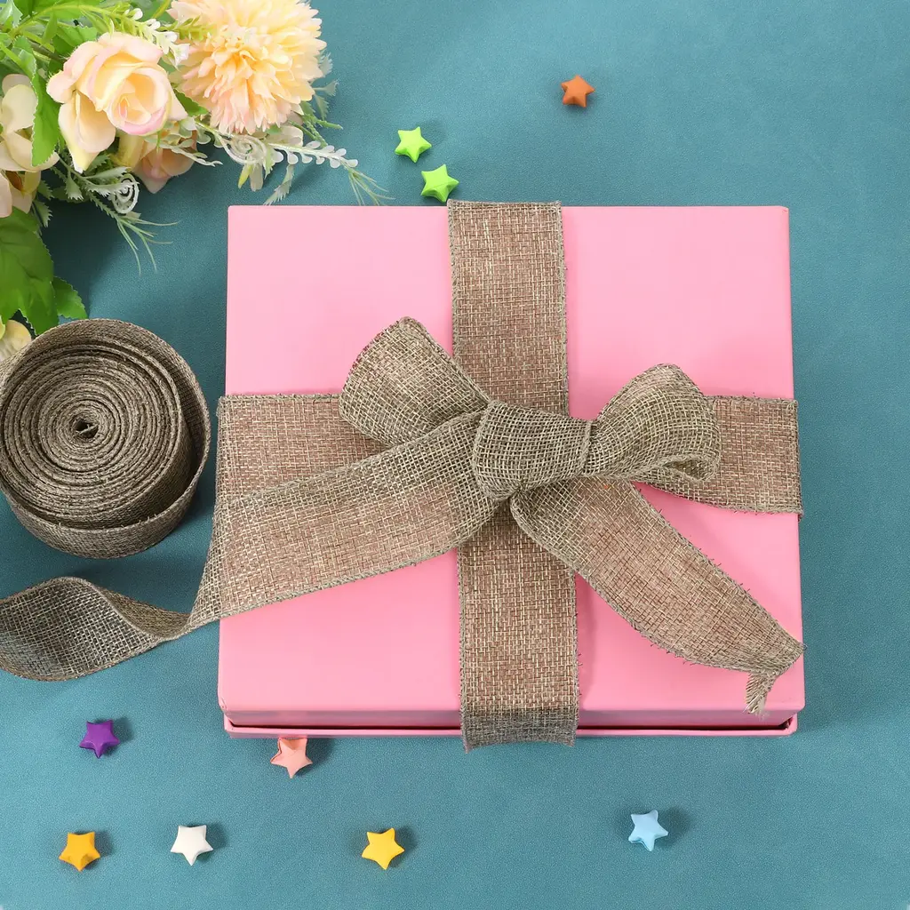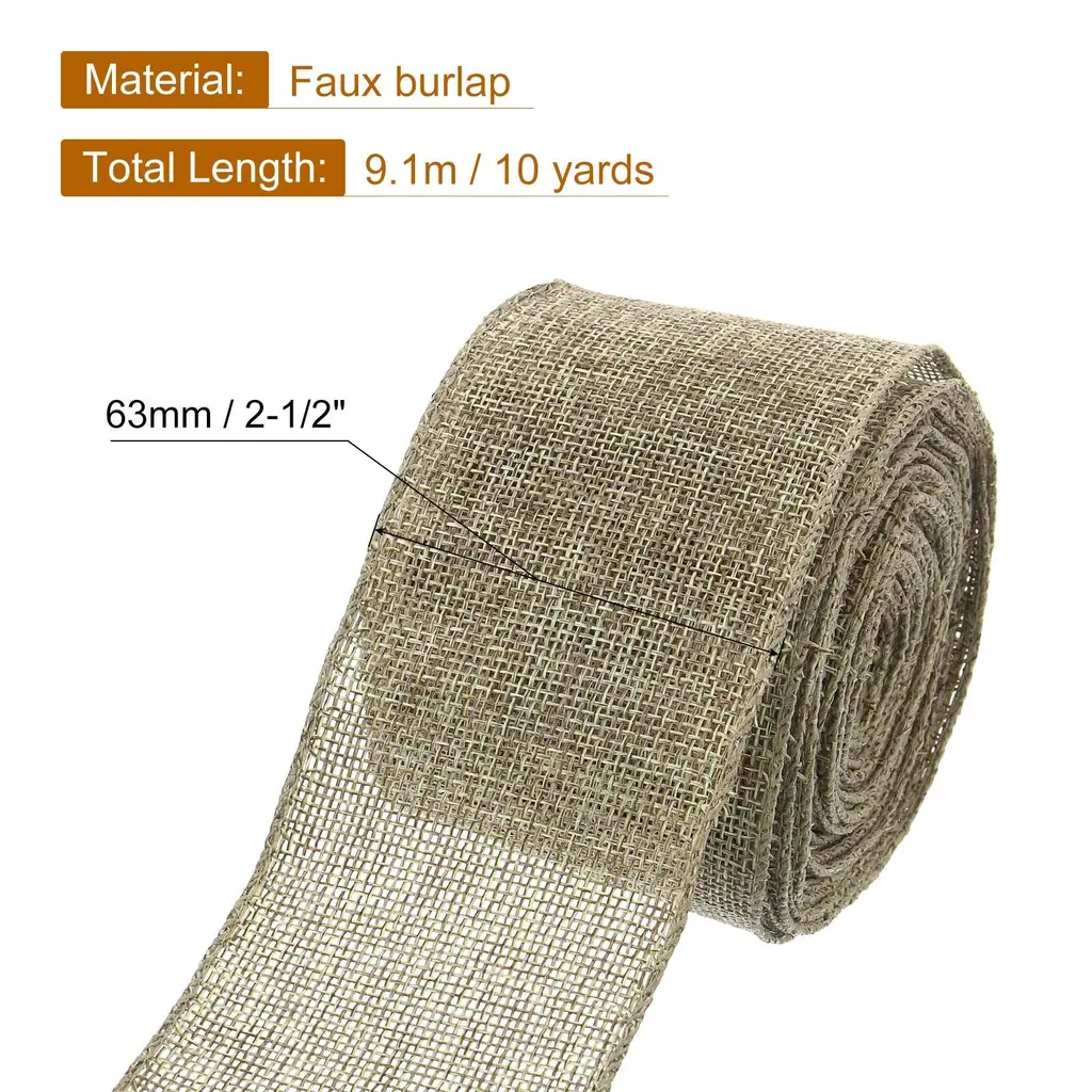 Product Specification:Material: faux burlap.Total width: 2-1/2 inch/63mm.Total length: 10 yards/9.1m length.Note: Due to different monitor models, the product you receive will be slightly different from the photo.Advantages of faux burlap wired ribbon:1. The wired ribbon is made from faux burlap fabric, which is soft, durable, and does not fade easily. Designed with high weave density, there won't be any loose edges. Metal wire is wrapped around the edges on both sides, which is convenient for you to shape and fix.2. Design by the simple solid colour, brings a sense of simplicity. The faux burlap wired ribbon roll makes it a great choice for creating country-inspired designs. Use it to accentuate handmade crafts, add a rustic touch to wedding decorations, or enhance the cozy feel of your home decor.3. This fabric ribbon roll is great for DIY crafts, such as bows, wedding invitations, and wreaths. It can be easily fixed and shaped to decorate for any occasion. You can cut, sew, or paste ribbons for various home decor or clothing designs.4. With its versatile design, this fabric-wired ribbon is perfect for all kinds of occasions, such as Christmas, weddings, Thanksgiving, Mother's Day, party decorations, etc. It can be used for gifts, Christmas trees, wedding bouquets, etc.