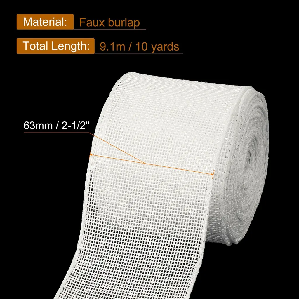 Product Specification:Material: faux burlap.Total width: 2-1/2 inch/63mm.Total length: 10 yards/9.1m length.Note: Due to different monitor models, the product you receive will be slightly different from the photo.Advantages of faux burlap wired ribbon:1. The wired ribbon is made from faux burlap fabric, which is soft, durable, and does not fade easily. Designed with high weave density, there won't be any loose edges. Metal wire is wrapped around the edges on both sides, which is convenient for you to shape and fix.2. Design by the simple solid colour, brings a sense of simplicity. The faux burlap wired ribbon roll makes it a great choice for creating country-inspired designs. Use it to accentuate handmade crafts, add a rustic touch to wedding decorations, or enhance the cozy feel of your home decor.3. This fabric ribbon roll is great for DIY crafts, such as bows, wedding invitations, and wreaths. It can be easily fixed and shaped to decorate for any occasion. You can cut, sew, or paste ribbons for various home decor or clothing designs.4. With its versatile design, this fabric-wired ribbon is perfect for all kinds of occasions, such as Christmas, weddings, Thanksgiving, Mother's Day, party decorations, etc. It can be used for gifts, Christmas trees, wedding bouquets, etc.