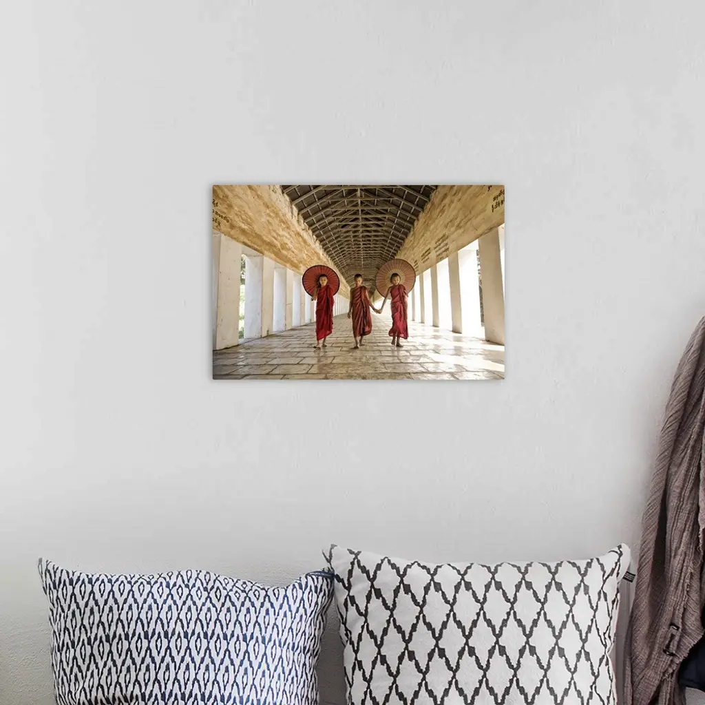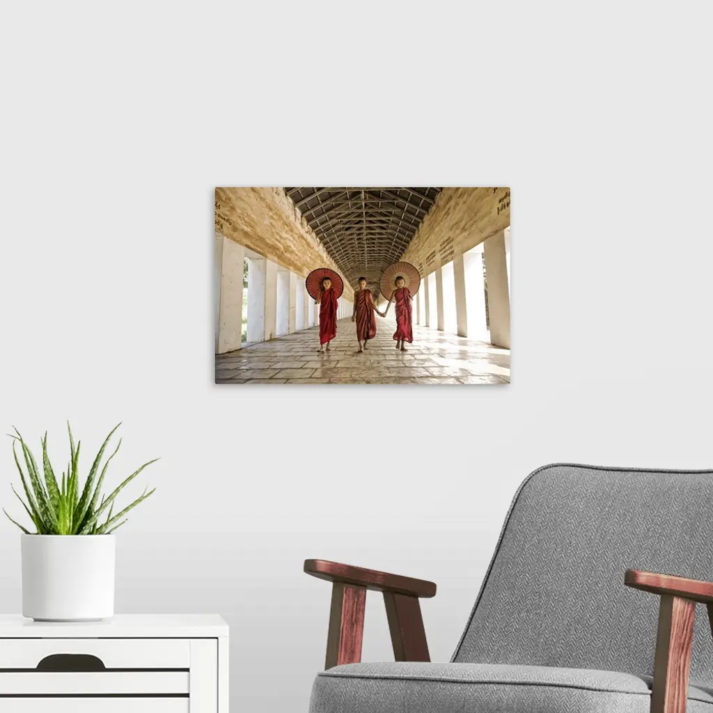 Burmese monks with parasols in their monastery, Mandalay, Burma wall art for home and office decor. Discover canvas art prints, photos, mural, big canvas art and framed wall art in GreatBigCanvas.com's varied collections.
