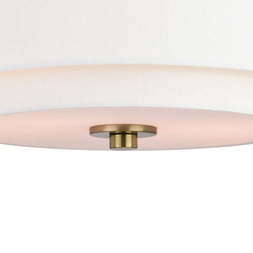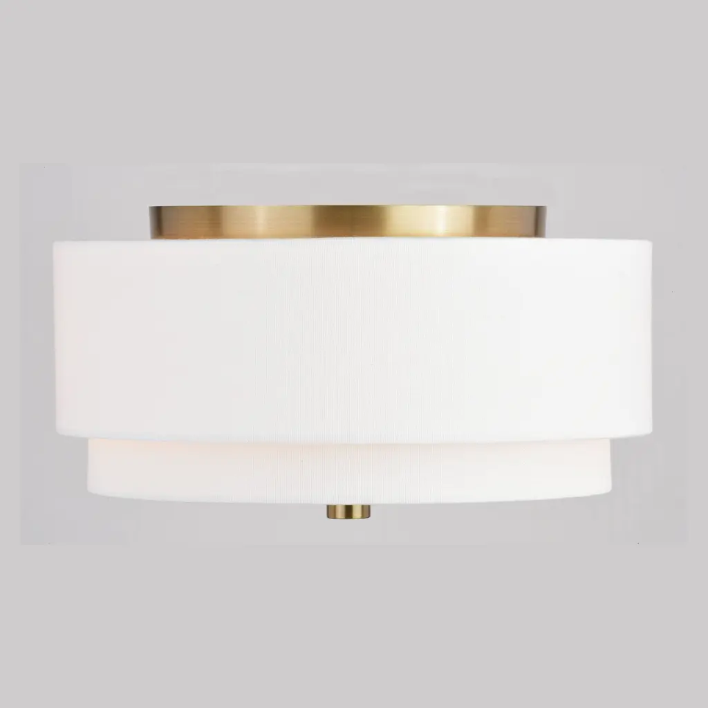 Burnaby Mid-Century Modern Ceiling Mount Light White Linen Drum Shade - Matte Brass - 13-In W X 6.75-In H X 13-In D