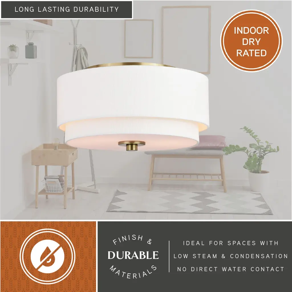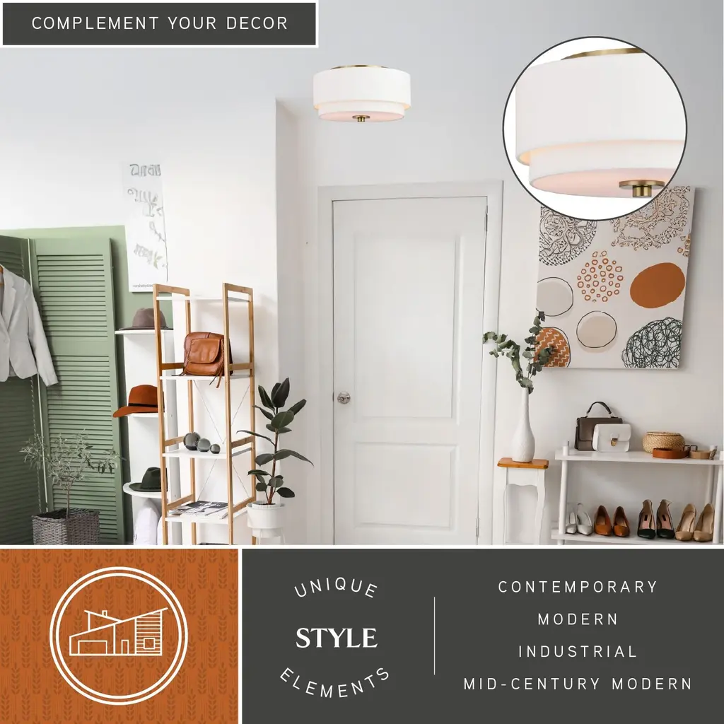 Indulge your mid-century modern dreams with this timeless collection. The Burnaby collection harkens to the days of Mad Men, yet brings an undeniably contemporary feel to your transitional or modern interiors. This semi-flush mount ceiling light is perfect for a low ceiling foyer, living room, hallway, entryway, or bedroom. Its soft mid-century modern style is enhanced by a linen drum shade. An acrylic diffuser hides the bulbs and creates even light distribution.FEATURES:• Distinctive look and quality steel construction• Linen shade provides bright illumination and a mid-century modern feel• Uses 60 watt E26 medium base bulbs (not included); LED compatible• Dimmable for desired illumination levels when used with dimmable bulbs and compatible wall switch• White frosted acrylic diffuser included for even light disbursement• Dry rated; ideal for dining rooms, kitchens, bedrooms, foyers, hallways, or any other dry area of your home• ETL rating demonstrates this product has met USA requirements for product safety standards• 1 Year limited warranty
