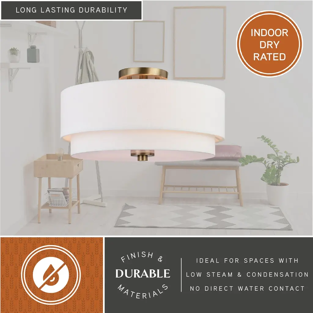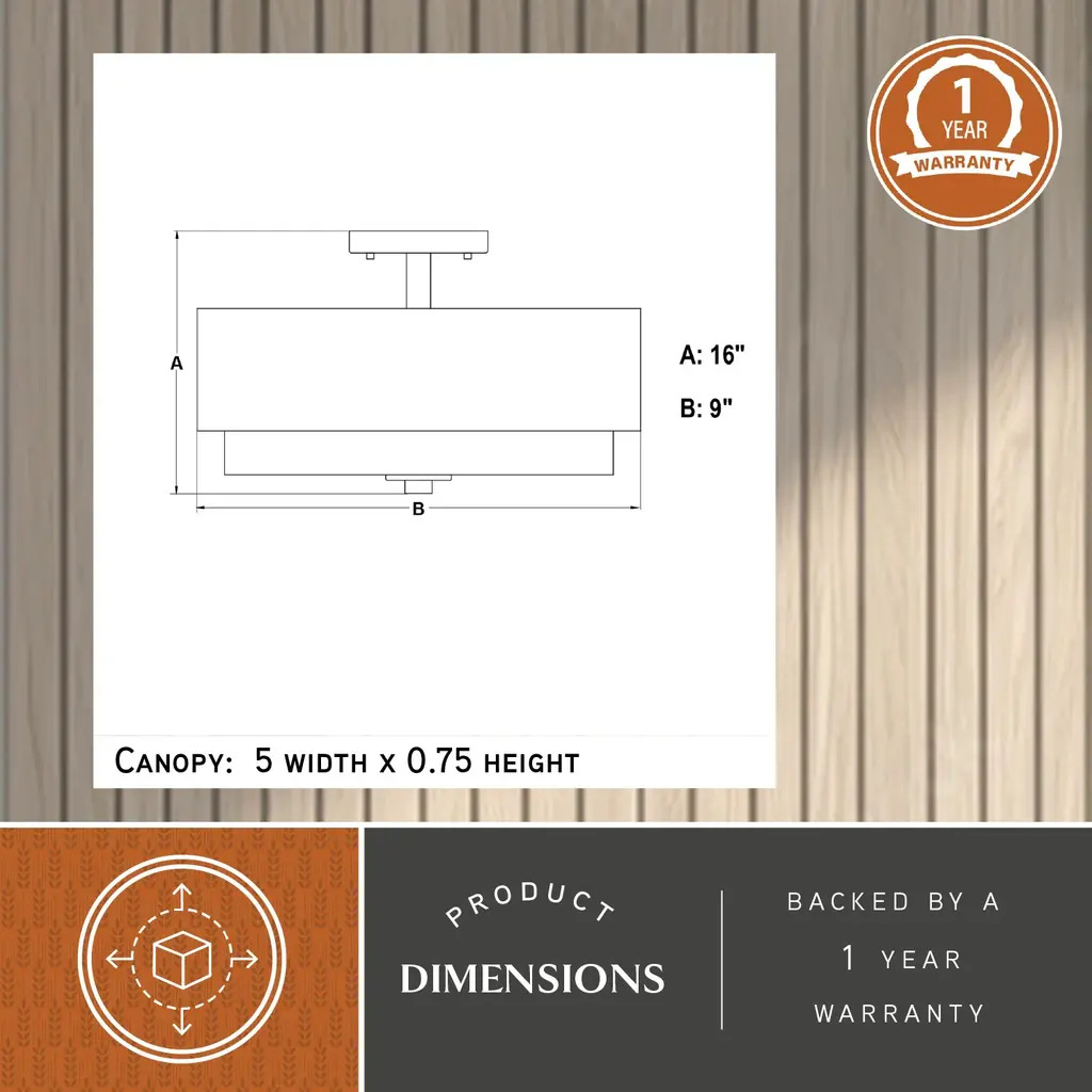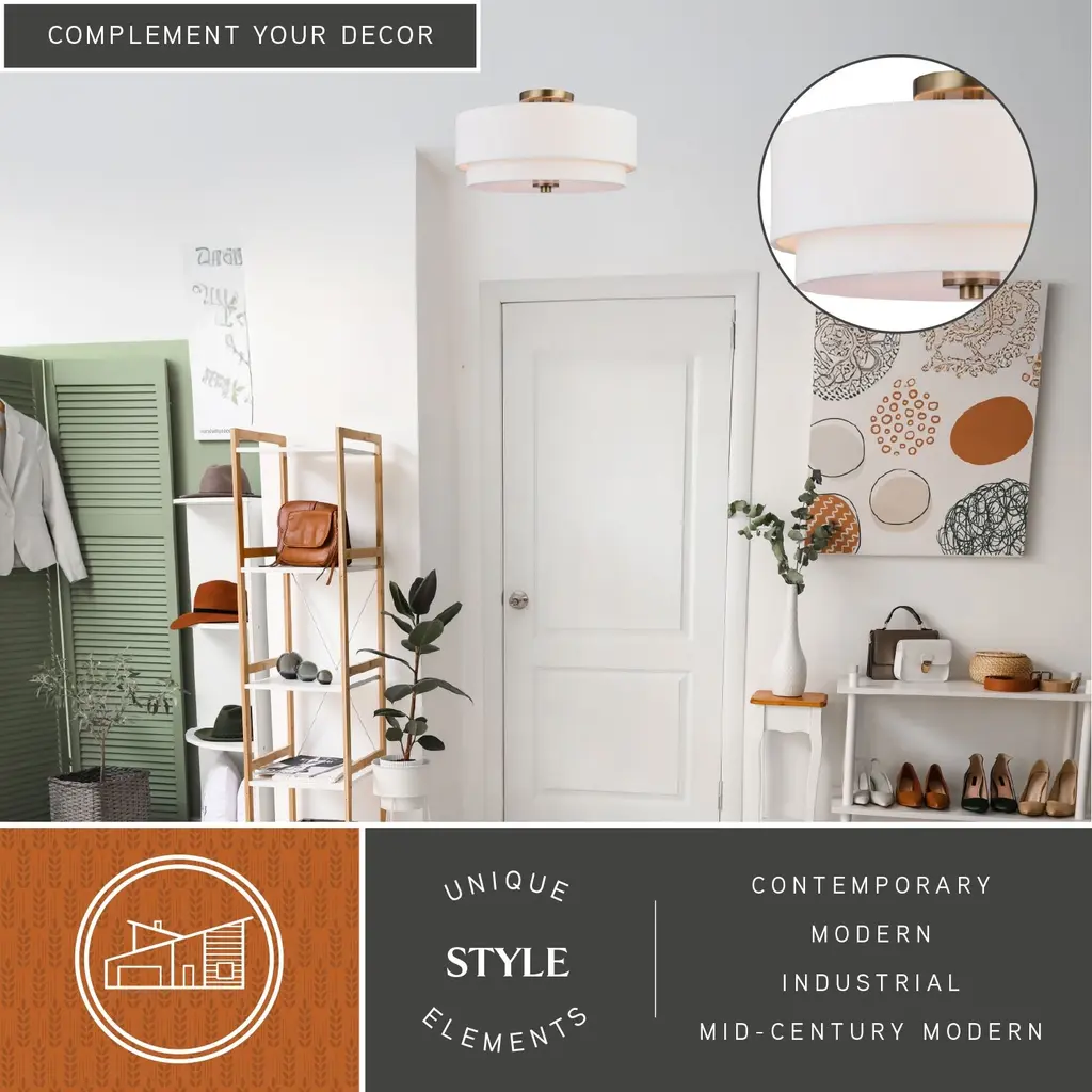 Indulge your mid-century modern dreams with this timeless collection. The Burnaby collection harkens to the days of Mad Men, yet brings an undeniably contemporary feel to your transitional or modern interiors. This semi-flush mount ceiling light is perfect for a low ceiling foyer, living room, hallway, entryway, or bedroom. Its soft mid-century modern style is enhanced by a linen drum shade. An acrylic diffuser hides the bulbs and creates even light distribution.FEATURES:• Distinctive look and quality steel construction• Linen shade provides bright illumination and a mid-century modern feel• Uses 60 watt E26 medium base bulbs (not included); LED compatible• Dimmable for desired illumination levels when used with dimmable bulbs and compatible wall switch• White frosted acrylic diffuser included for even light disbursement• Dry rated; ideal for dining rooms, kitchens, bedrooms, foyers, hallways, or any other dry area of your home• ETL rating demonstrates this product has met USA requirements for product safety standards• 1 Year limited warranty
