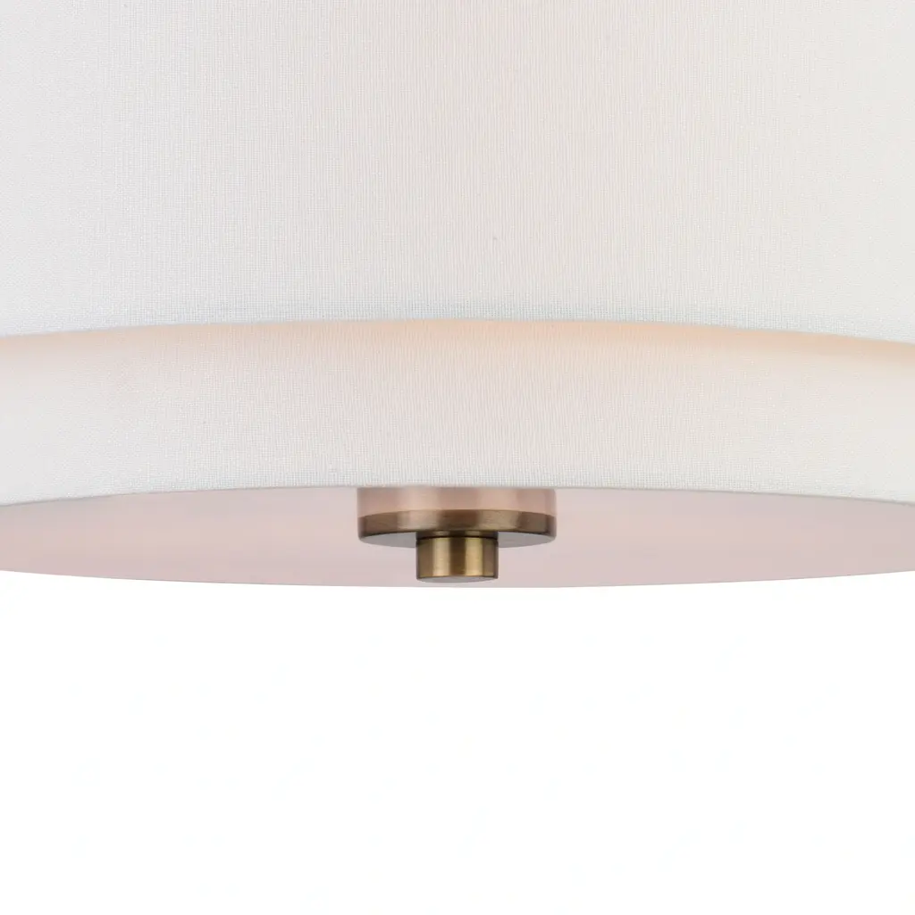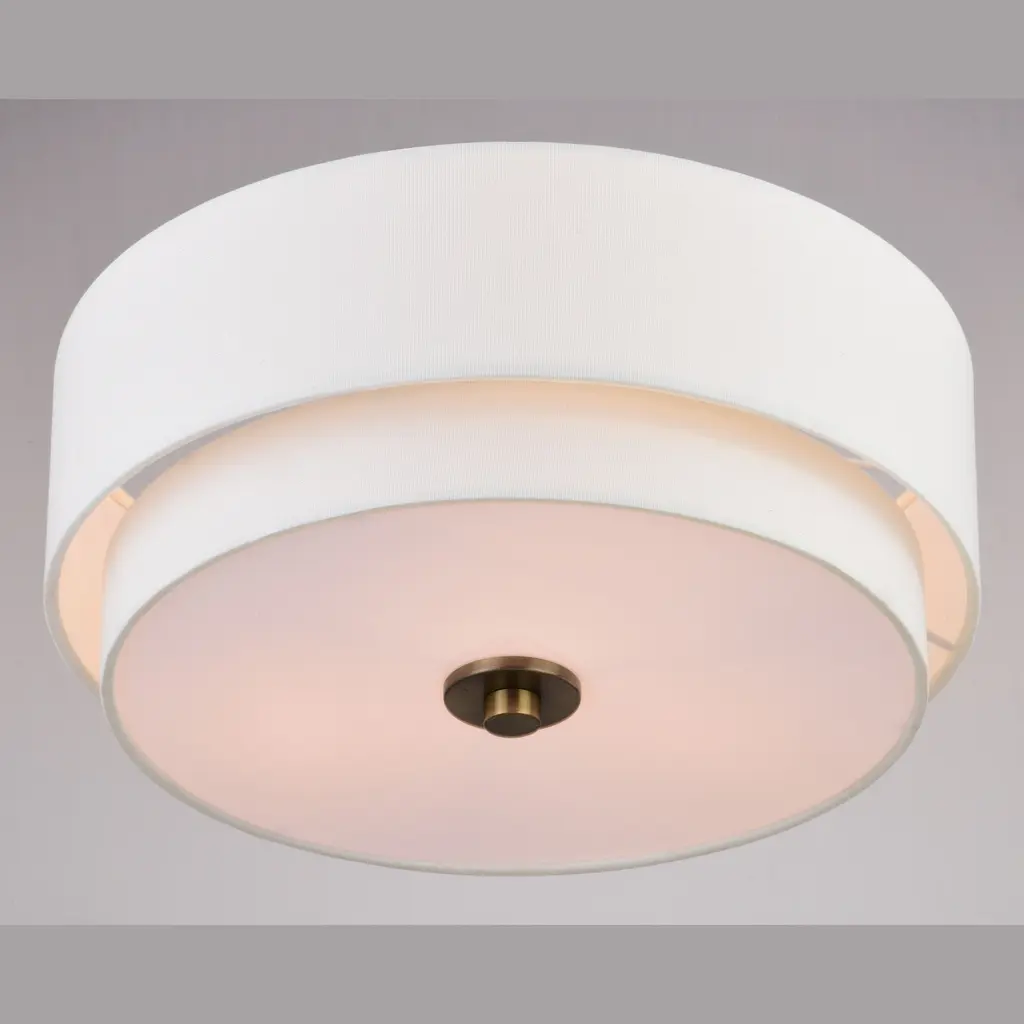 Burnaby Mid-Century Modern Ceiling Mount Light White Linen Drum Shade - Matte Brass - 16-In W X 9-In H X 16-In D