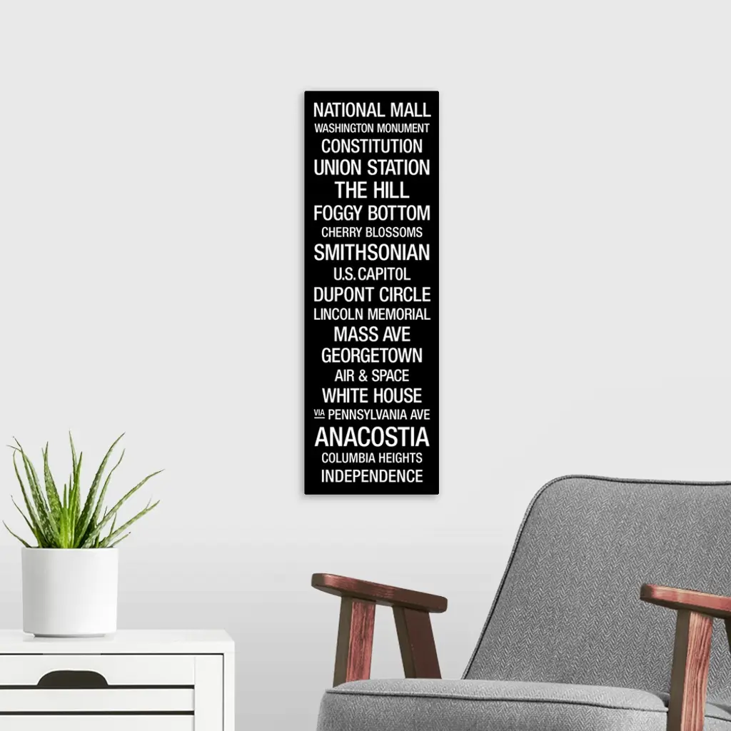 Giant subway art illustration for the national capital of the United States of America. Landmarks within this art include the U.S. Capitol, Union Station, and the Washington Monument.