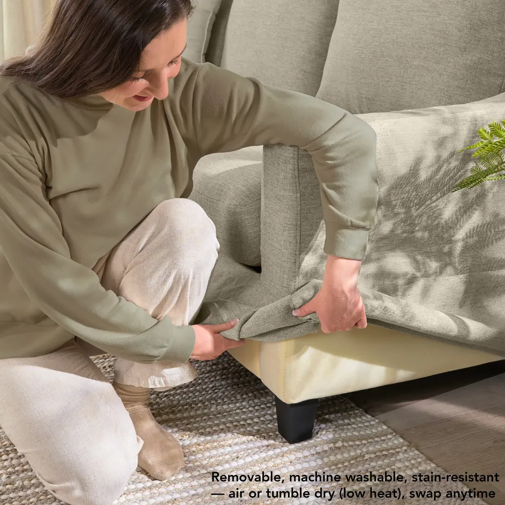 A cozy retreat for two — the Bush Home Harper 57W Loveseat with Slipcover blends inviting comfort with a timeless design that’s perfect for apartments, reading nooks, or any space that calls for relaxed sophistication. Its clean, classic silhouette is made to complement any décor, while deep, plush cushions make it impossible to resist sinking in. The removable slipcover completes the look with a soft, tailored finish that’s easy to remove, swap, and refresh whenever you like.