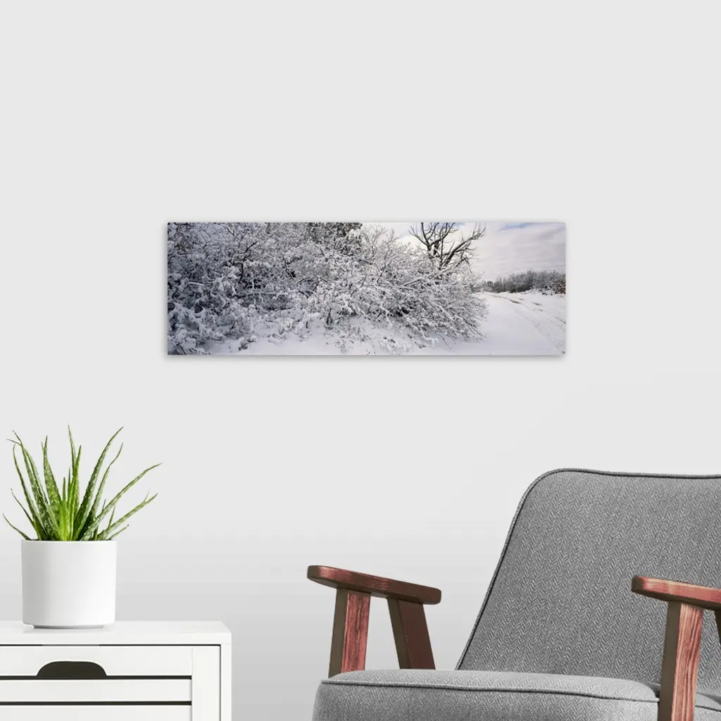Bushes covered with snow, La Sal Mountains, Moab, Utah wall art for home and office decor. Discover canvas art prints, photos, mural, big canvas art and framed wall art in GreatBigCanvas.com's varied collections.