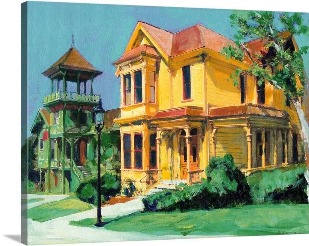 Bushyhead house painted by San Diego artist by RD Riccoboni. This 1887 Italianate- Stick Style Victorian home was built by Edward Wilkerson Bushyhead. Bushyhead traveled to California during the gold rush and served as San Diego sheriff and chief of police in addition to being part owner of the San Diego Union newspaper, which published its first edition near the Plaza in Old Town on October 10, 1868.