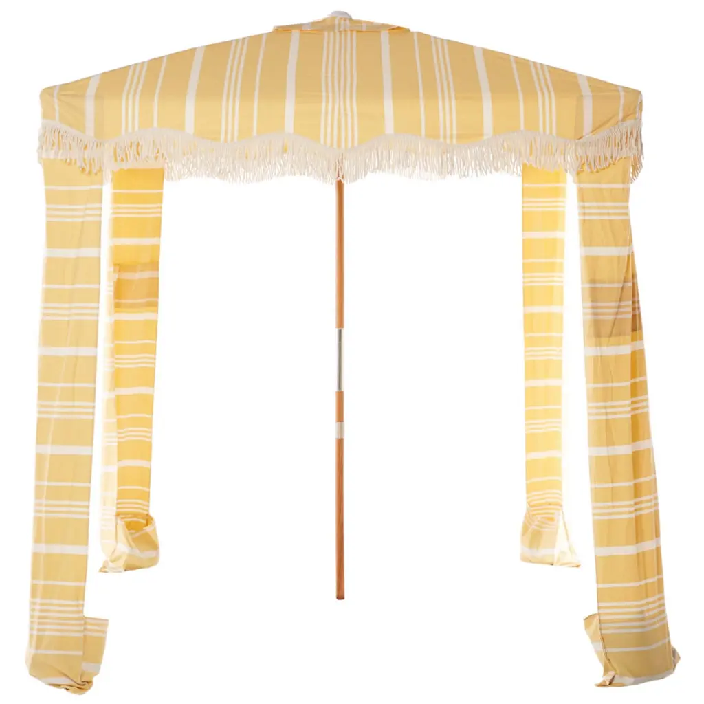 With a Cali-cool vibe and sunny vintage charm, Business & Pleasure Co. designs quality beach goods made for max relaxing in style. Compact to carry and easy to set up, the Premium Cabana will change your beach game. Extra roomy for luxury shade, it's a picturesque seaside or park accessory for all-day lounging.
