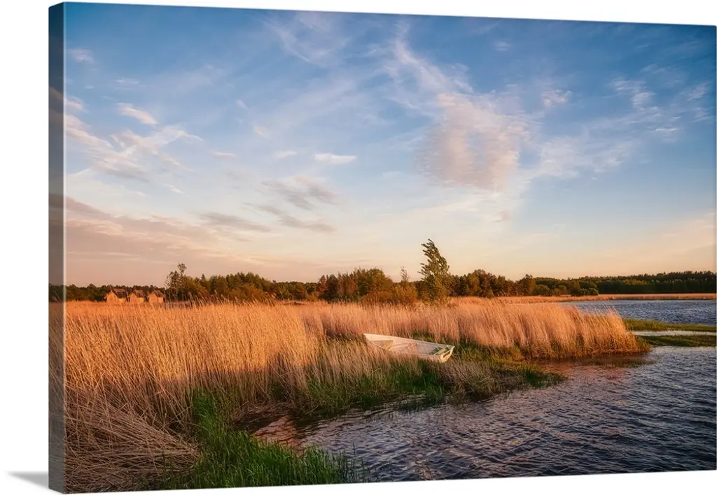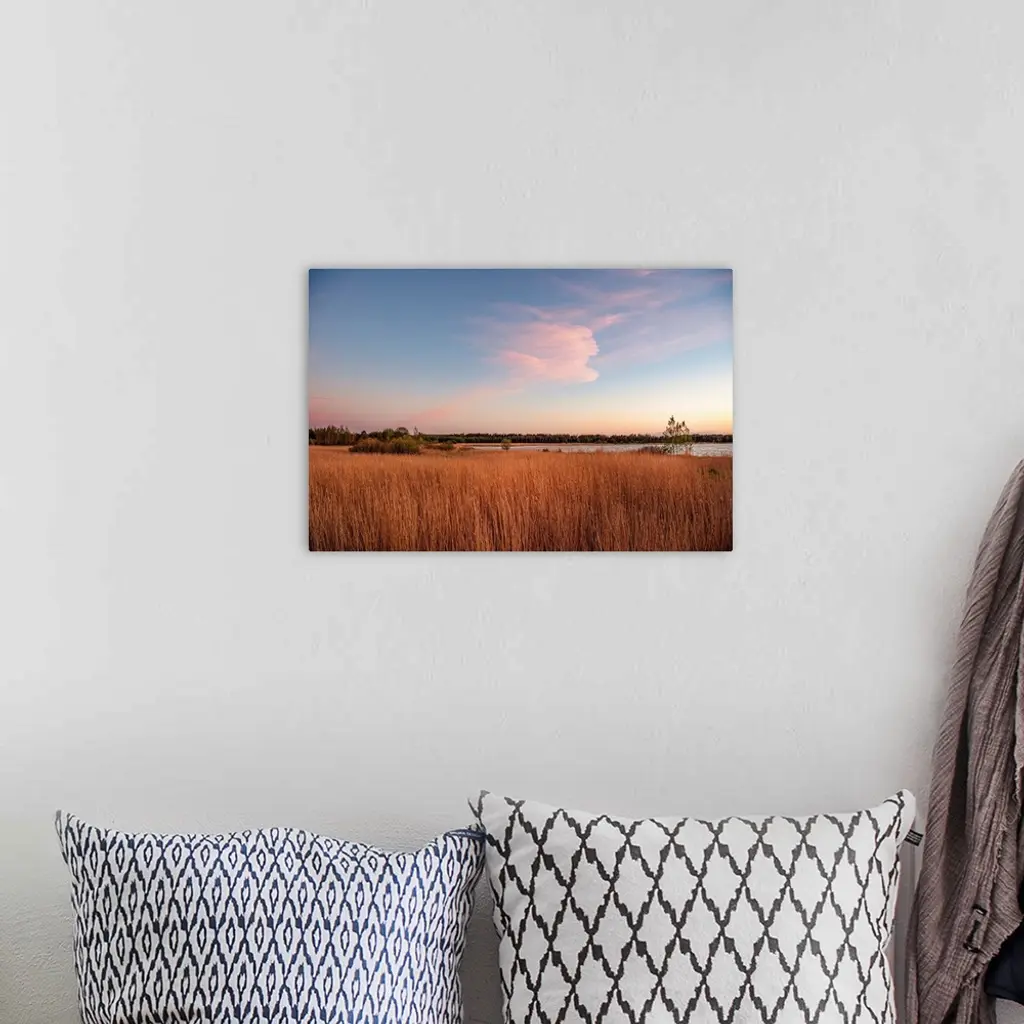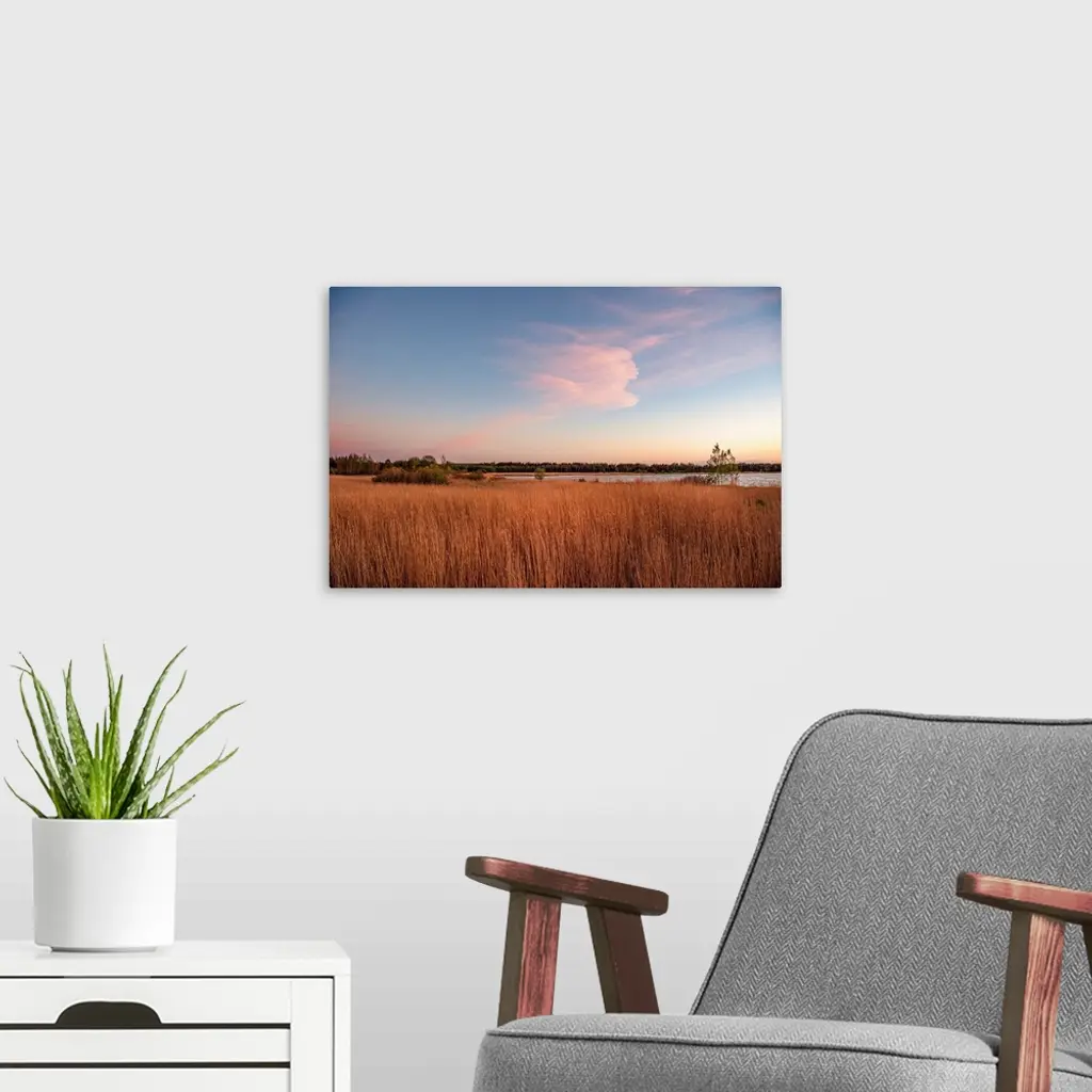 Tall grass along the water at sunset