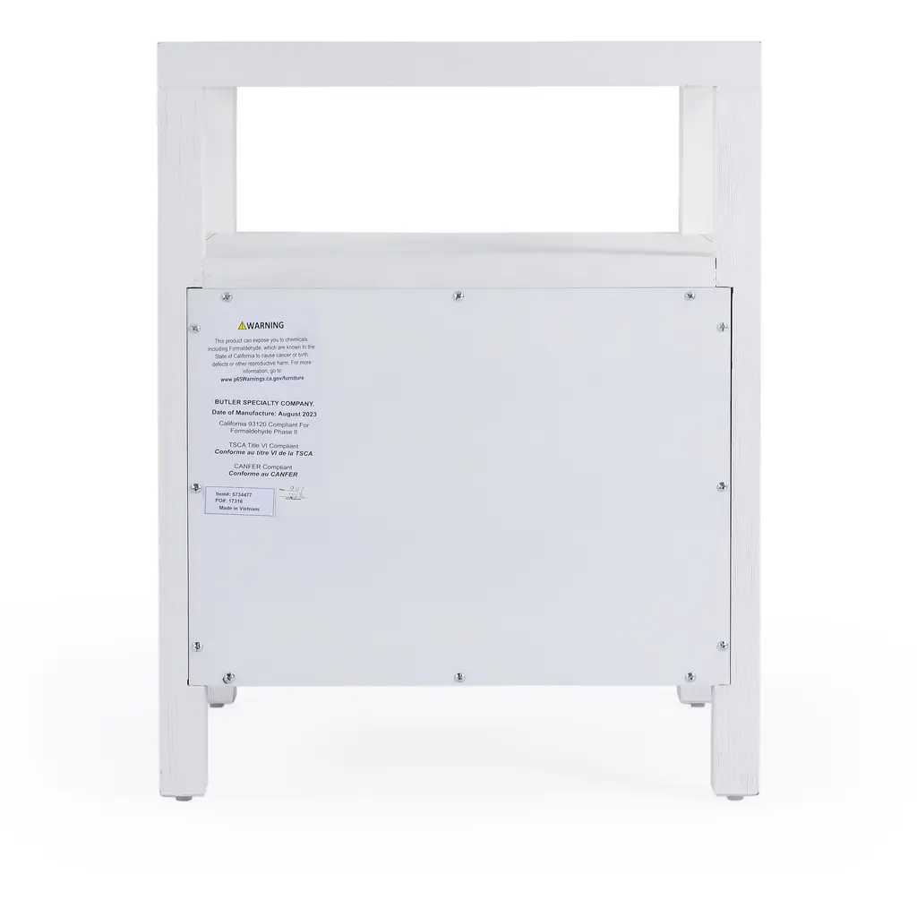 With a straightforward, clean design, and fine craftsmanship, the Butler Specialty Company Nora collection brings a traditional form to your living space. Designed with 2 lower drawers and an open shelf above, it offers thoughtful features for easy access and storage and comes in a light natural finish that lends a gorgeous visual texture and sophisticated look.