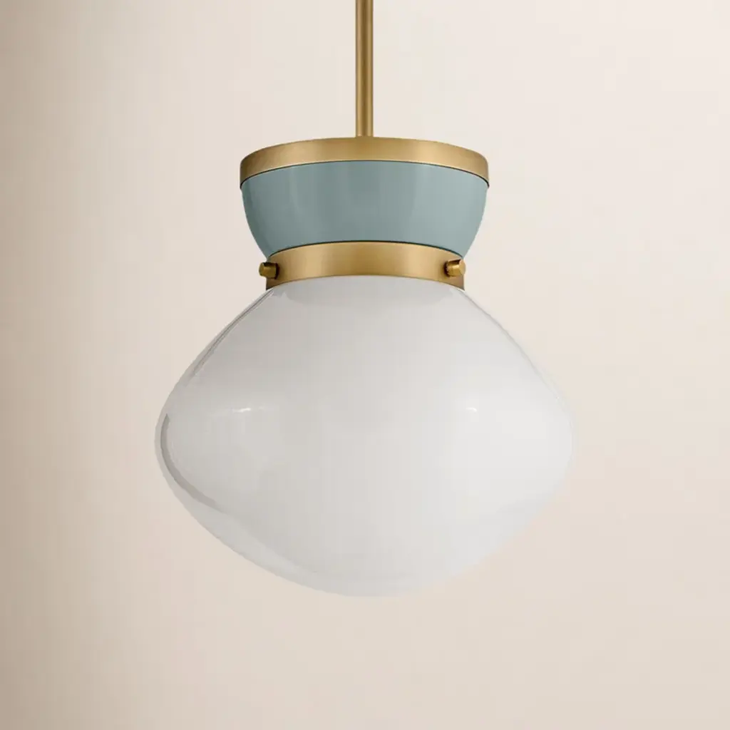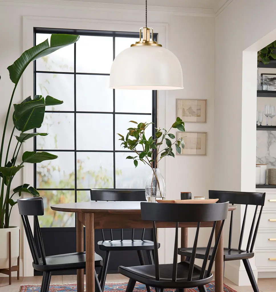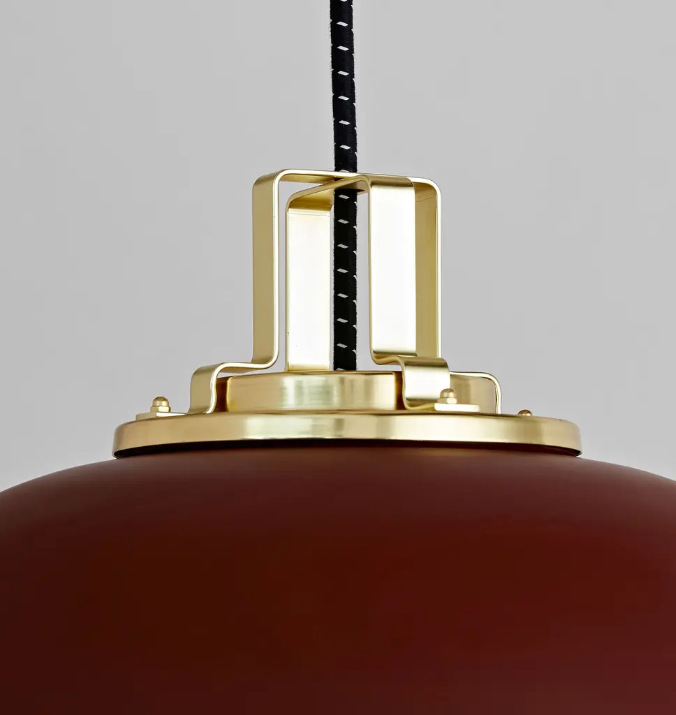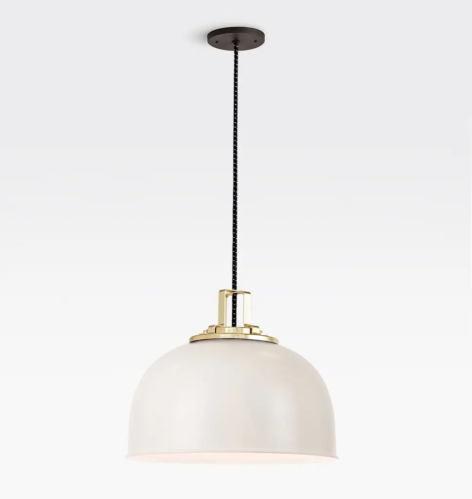 A large dome shade features a streamlined silhouette for our Butte Pendant, complete with an aged brass fixture and a cloth-covered cord. Each shade is made with high-quality spun aluminum, then customized to your specifications at our Portland, Oregon factory.