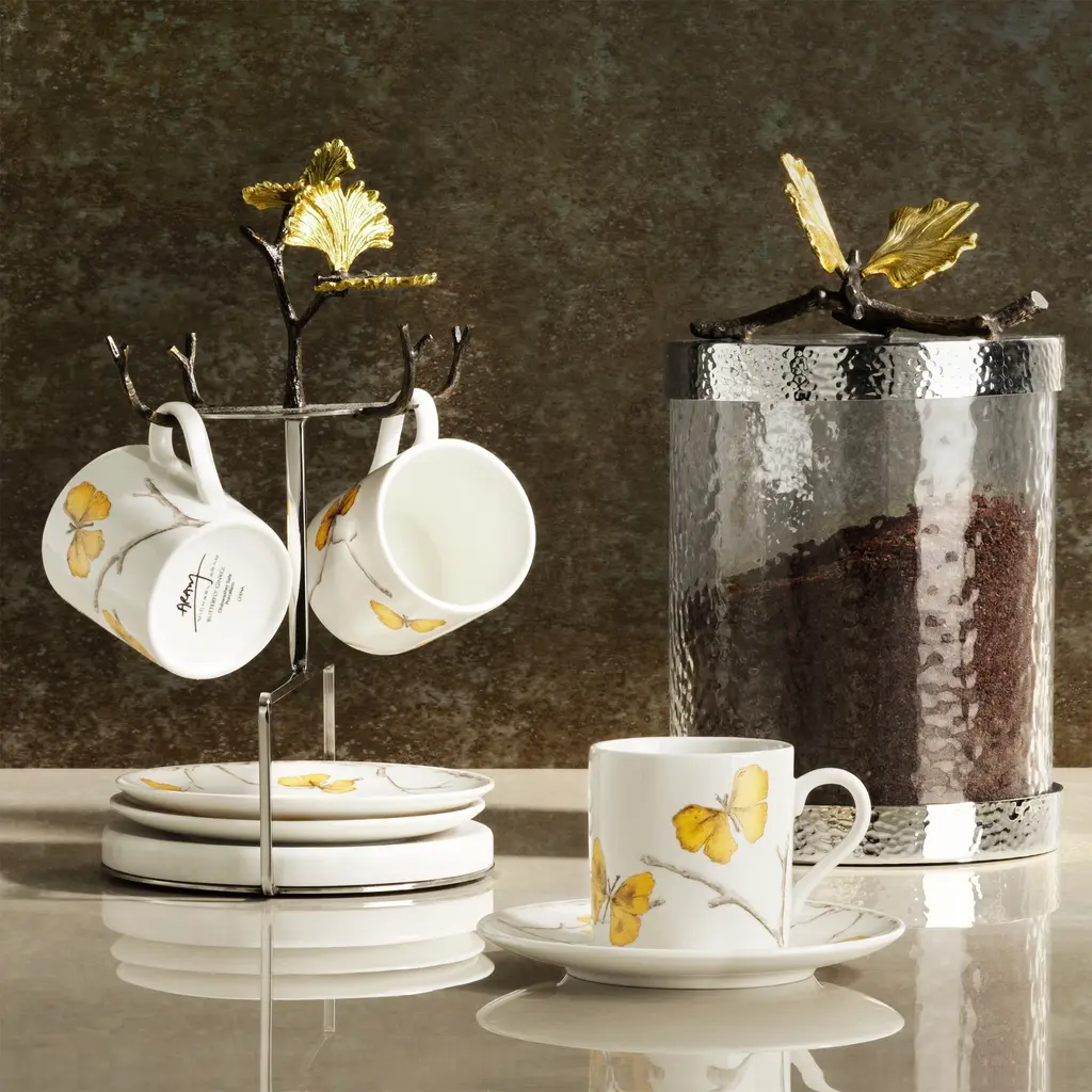 Butterfly Ginkgo Gold Demitasse Set, Service For 4