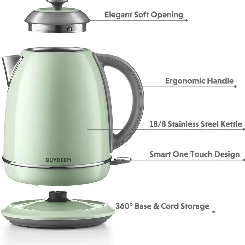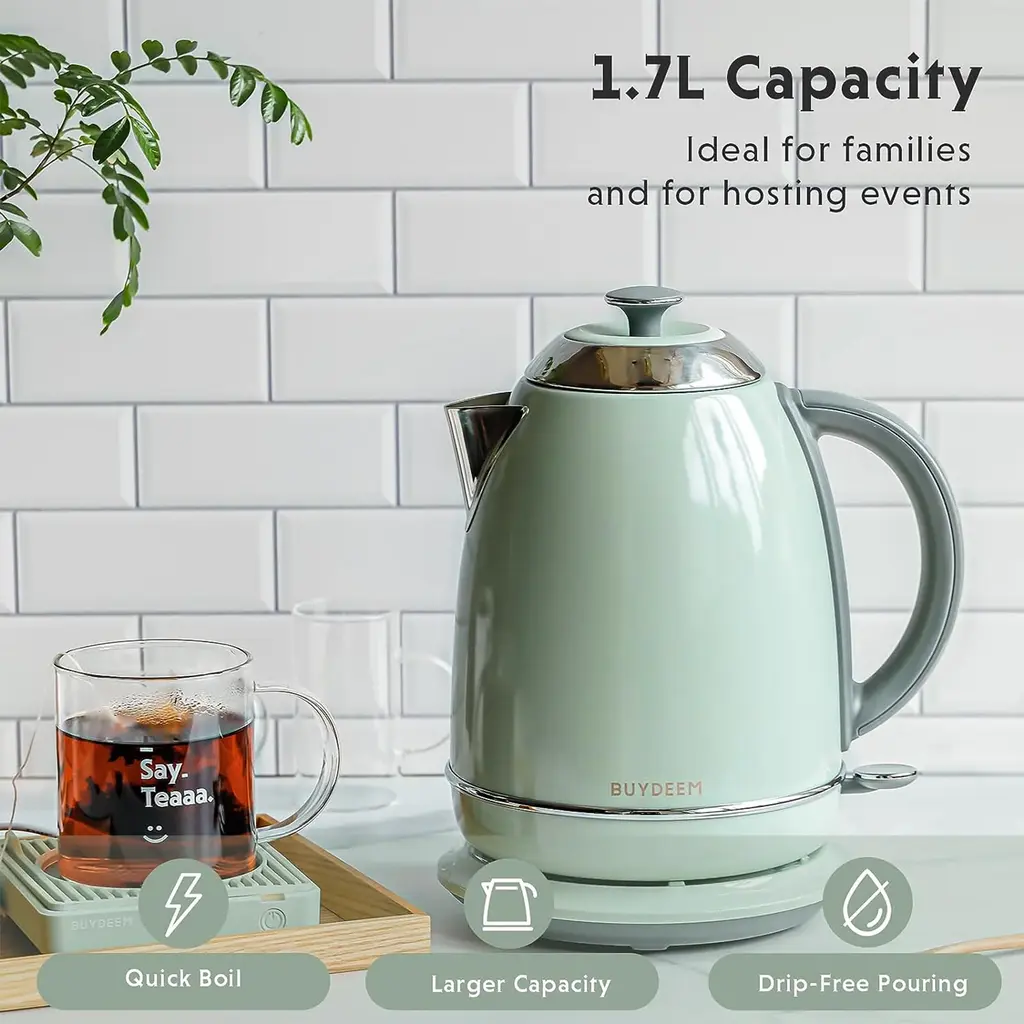 Buydeem 1.7l Stainless Steel Electric Tea Kettle With Auto Shut-Off And Boil Dry Protection - Green