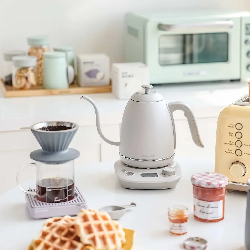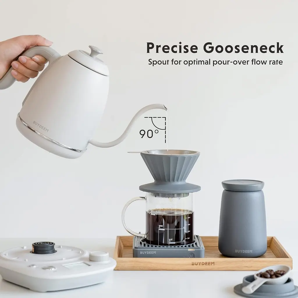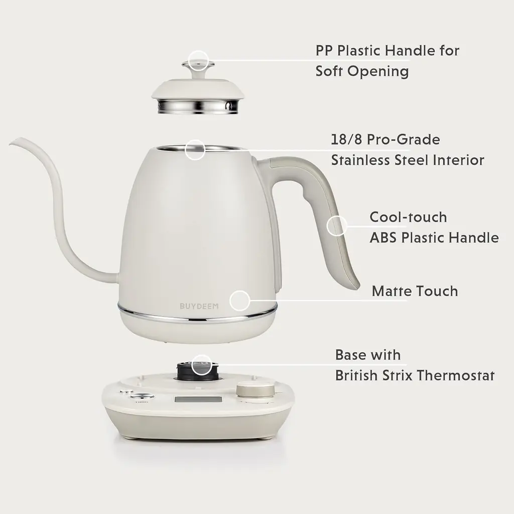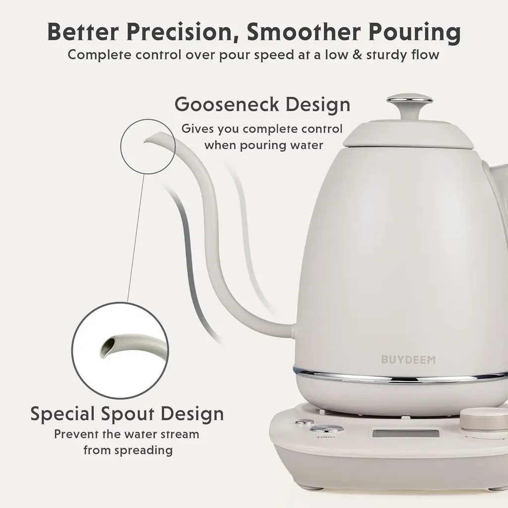 Buydeem Electric Gooseneck Kettle With Variable Temperature Control, Pour Over Coffee Tea Kettle - Oat Meal White