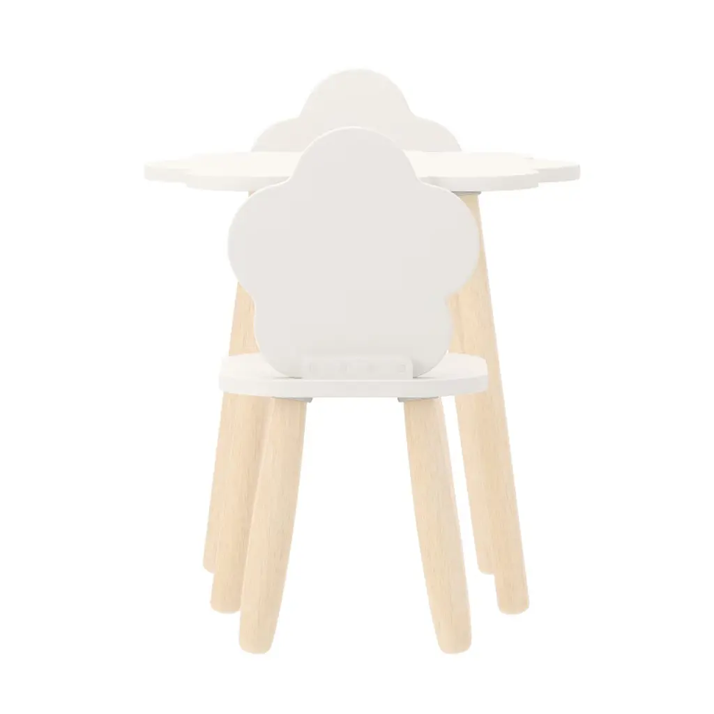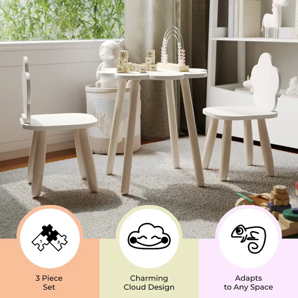Buzz & Bloom Kids 3-piece Wood Cloud-shaped Table And Chairs Set, White/natural