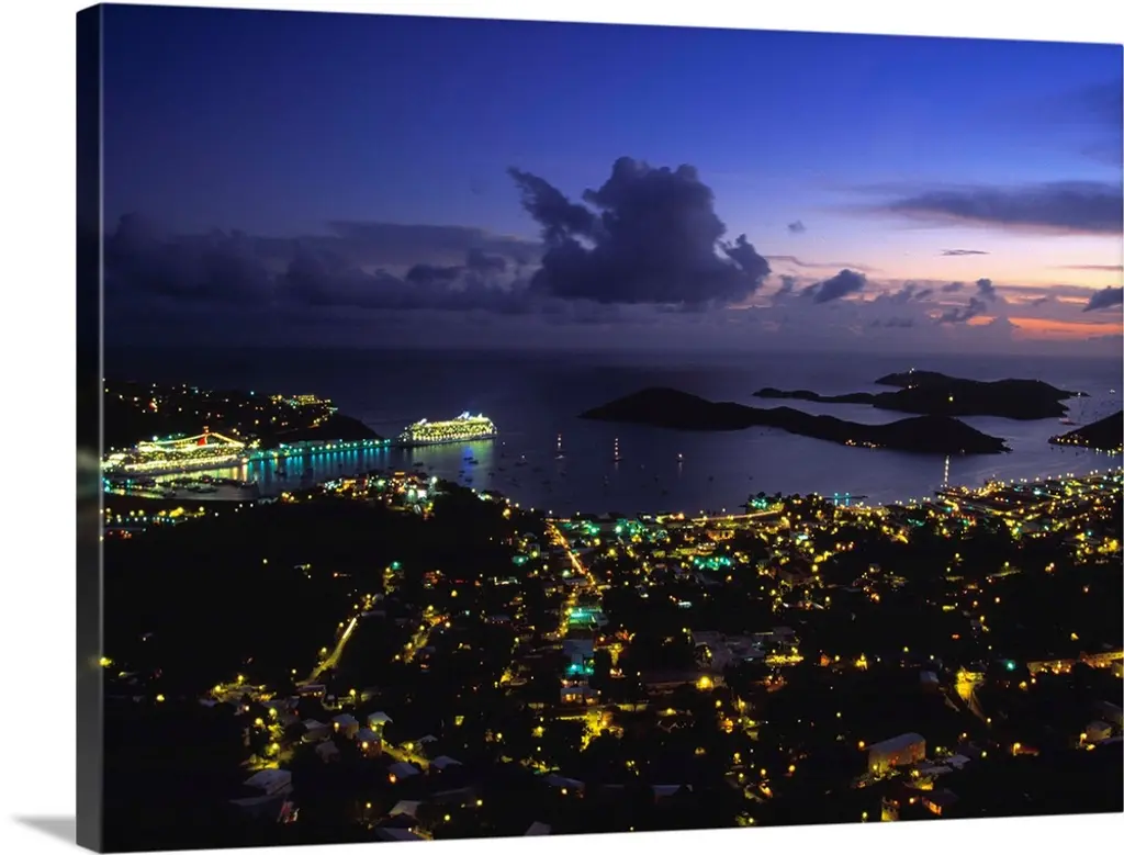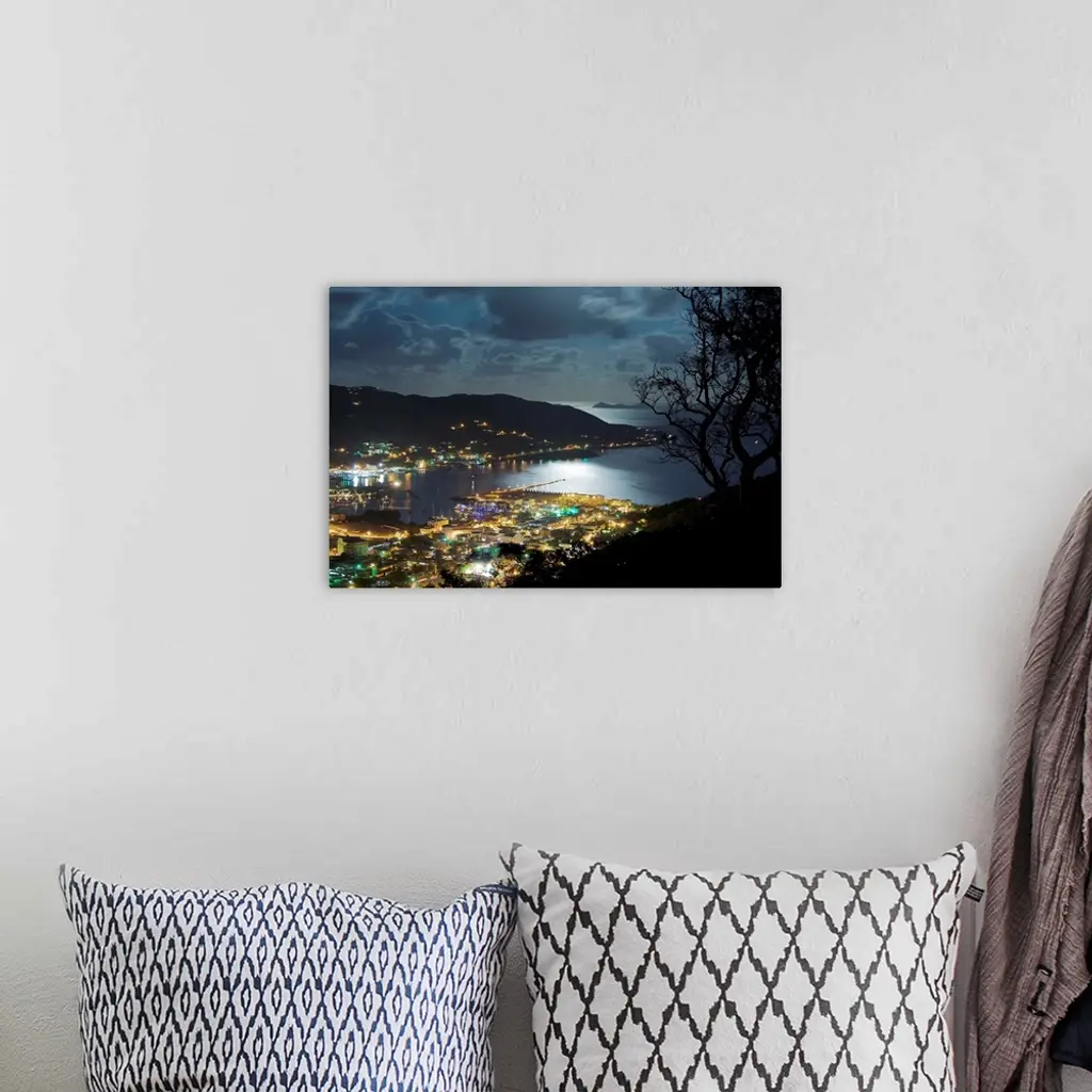 BVI, Tortola, Caribbean, View of Road Town during a full moon night wall art for home and office decor. Discover canvas art prints, photos, mural, big canvas art and framed wall art in GreatBigCanvas.com's varied collections.